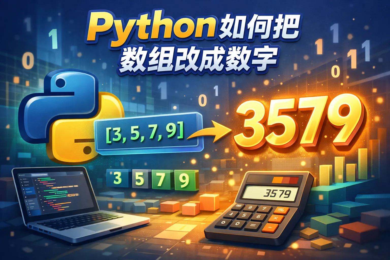 利用Python的map函数将数组元素转换成字符串,然后用join方法连接成一个字符串,再调用int函数转换为整数。这样操作既简洁又高效。