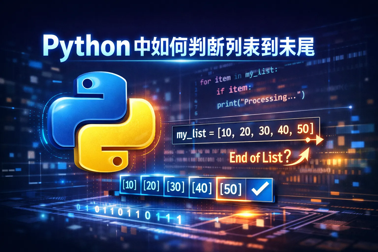 可以通过比较当前索引和列表长度减一的值来判断是否到达列表末尾。例如,若当前索引等于 len(list) - 1,则表示已经到达列表的最后一个元素。