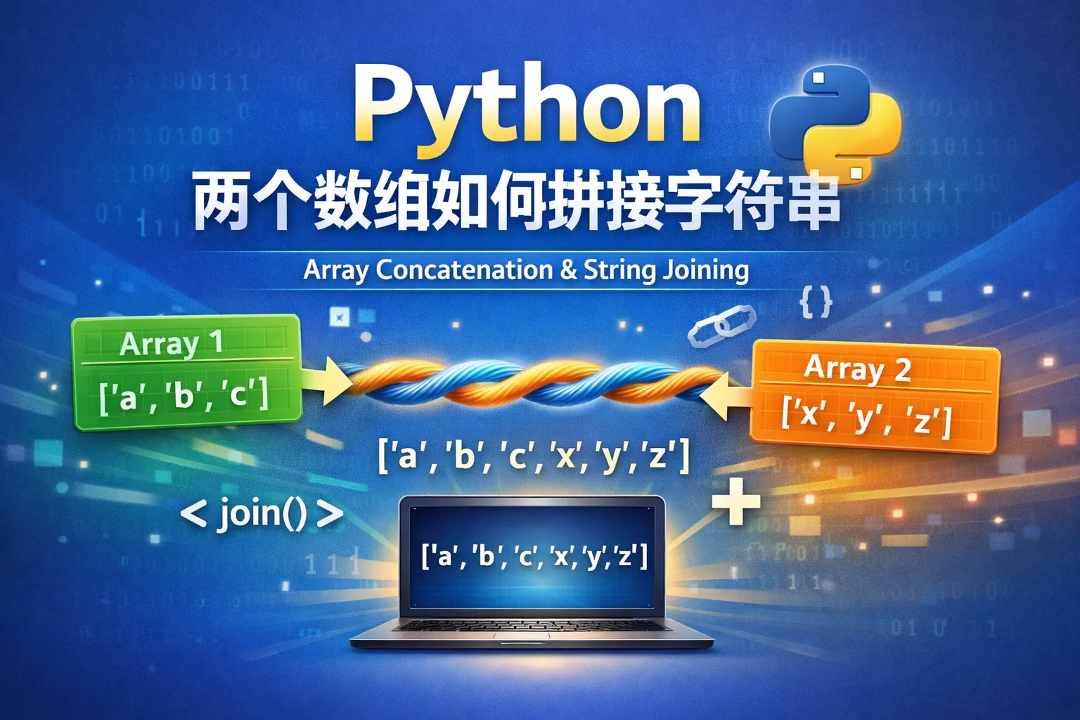 可以先将两个数组合并为一个数组,再使用字符串的join方法将数组元素连接成字符串。例如,使用加号操作符合并两个列表,再用'join'方法连接所有元素,确保数组元素是字符串类型。