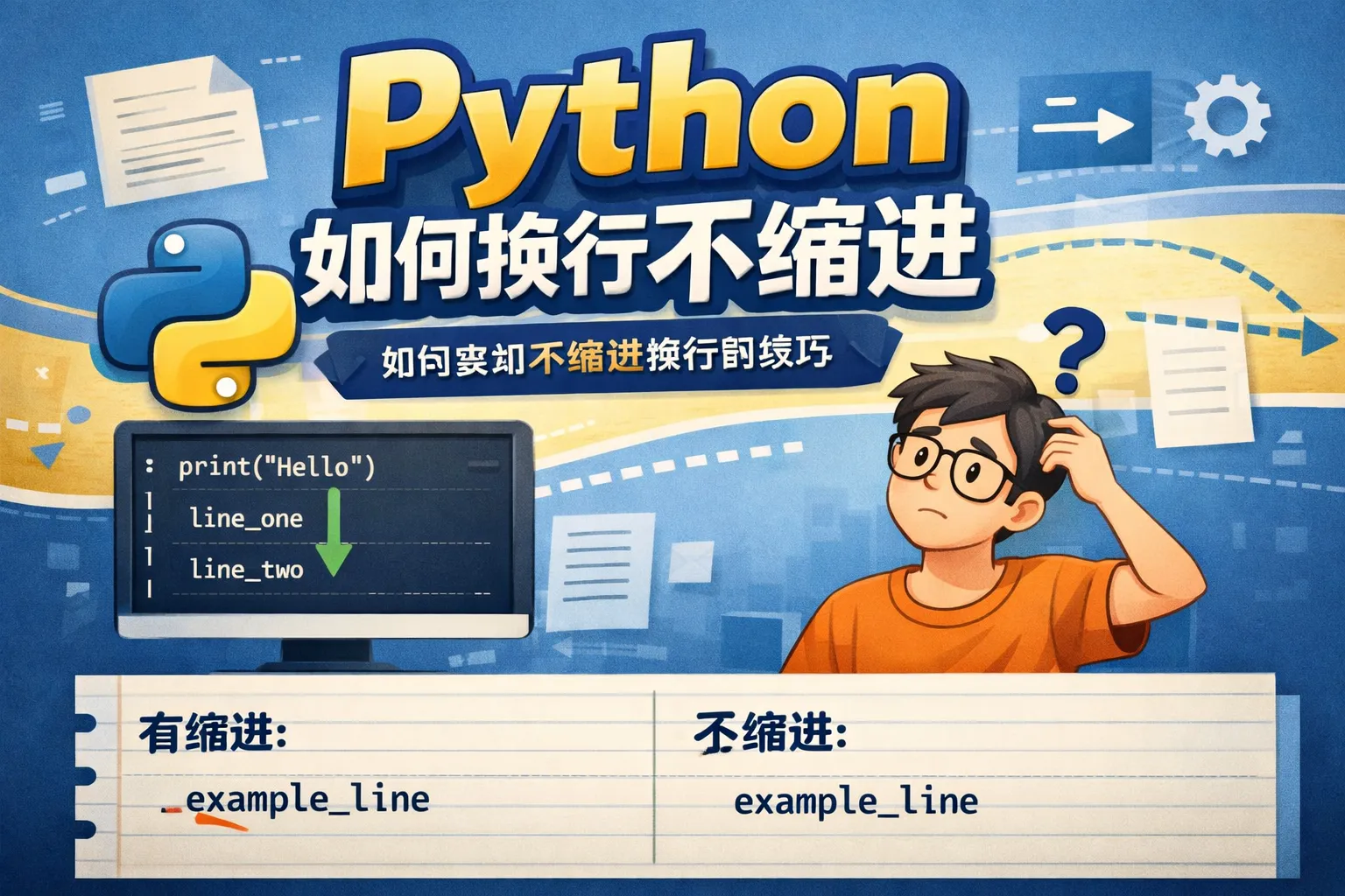 在编写Python代码时,有时需要换行但又不希望下一行自动缩进,如何做到这一点?