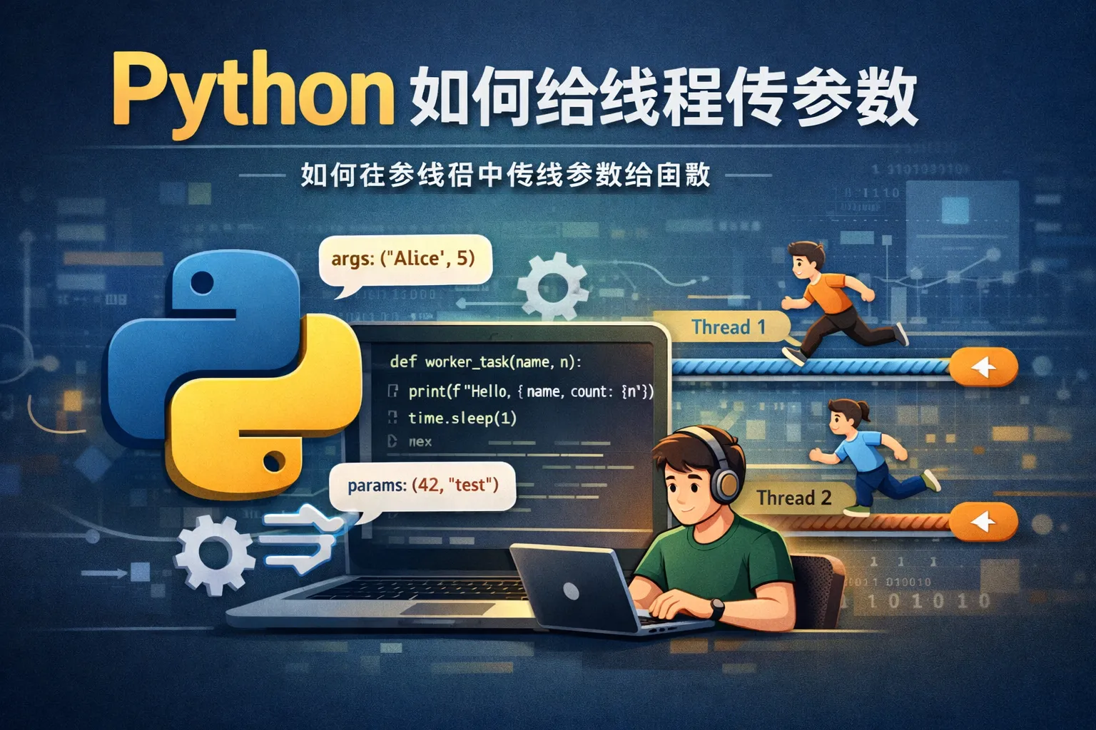 可以通过定义线程类,继承自threading.Thread并重写其构造函数,将参数作为类的属性传递,这样在线程的run方法中即可访问这些参数。该方式适合参数较多或者线程行为复杂的情况,代码结构更加清晰。
