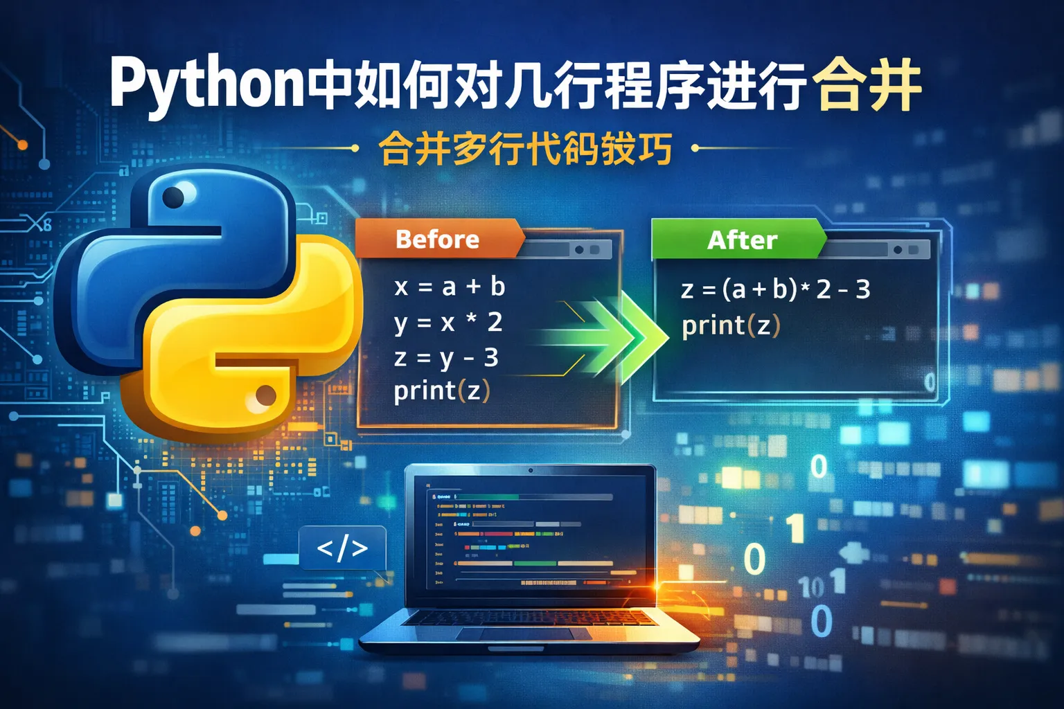 可以通过在一行中使用分号(;)分隔多条语句来合并多行代码。此外,对于条件语句或循环,可以采用Python的列表推导、三元表达式或逻辑运算符实现一行代码表达。需要注意,过度合并会降低代码可读性。