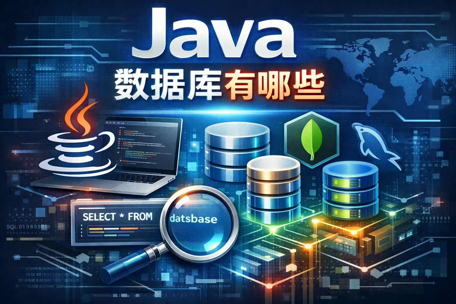 Java开发中常用的数据库类型包括关系型数据库如MySQL、PostgreSQL、Oracle、SQL Server以及SQLite。同时,也支持一些NoSQL数据库,如MongoDB和Cassandra,满足不同应用场景的需求。