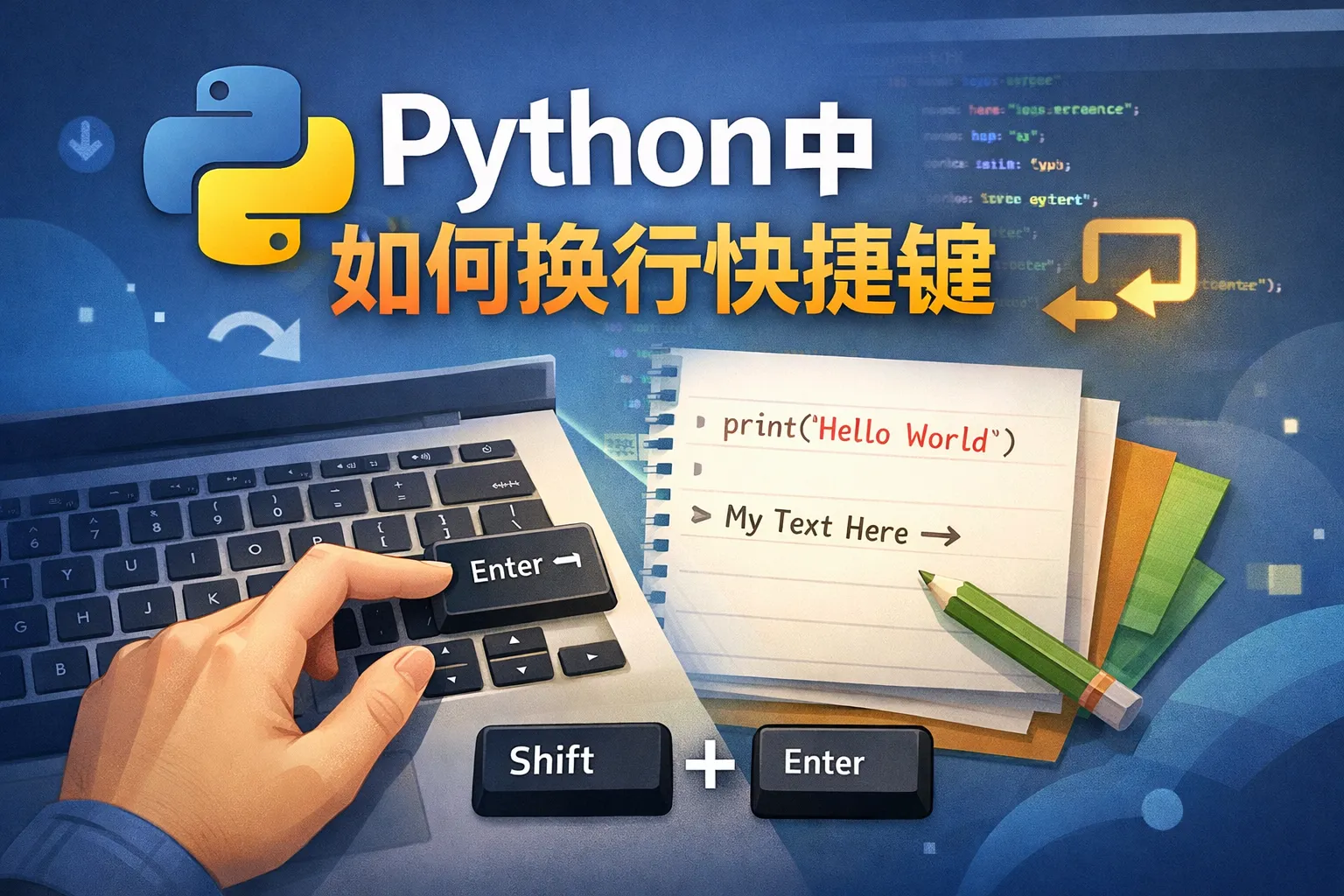 大部分Python编辑器或IDE中,按下回车键即可实现换行。如果需要在代码字符串中插入换行符,可以使用\n。部分编辑器支持Shift + Enter来插入换行而不执行代码。具体快捷键取决于你使用的编程工具,例如PyCharm、VSCode或Jupyter Notebook。