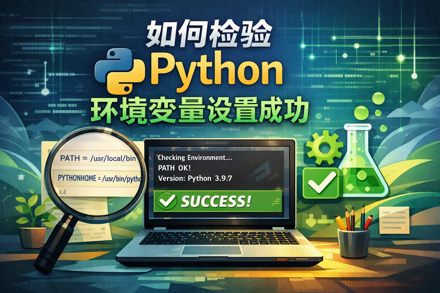 打开命令提示符(Windows)或终端(macOS/Linux),输入命令 python --version 或 python3 --version。如果显示Python的版本号,说明环境变量配置成功。若提示找不到命令,则说明配置未成功。