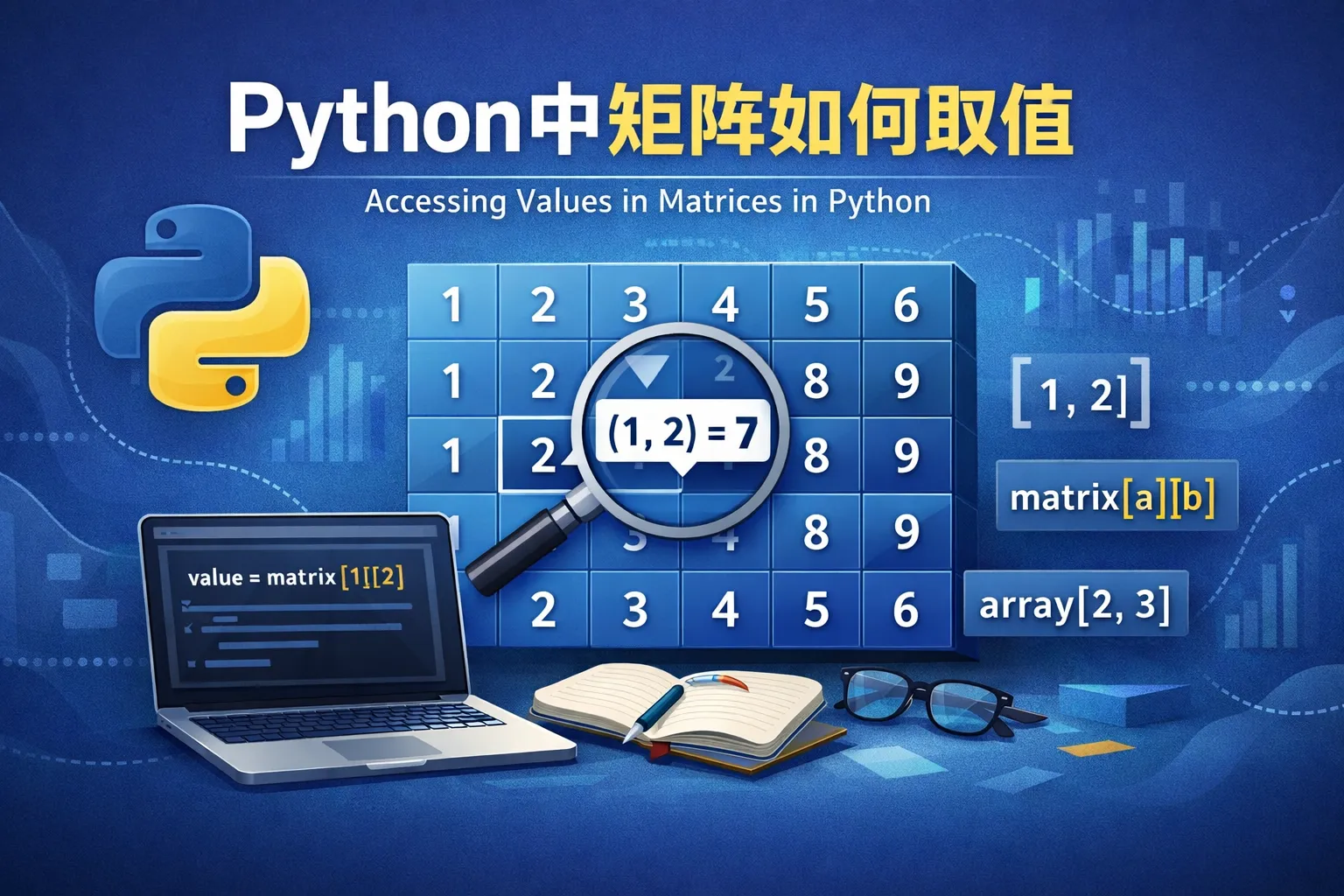 我想知道在Python中如何准确获取二维数组或矩阵中的某个元素,应该使用什么样的语法?