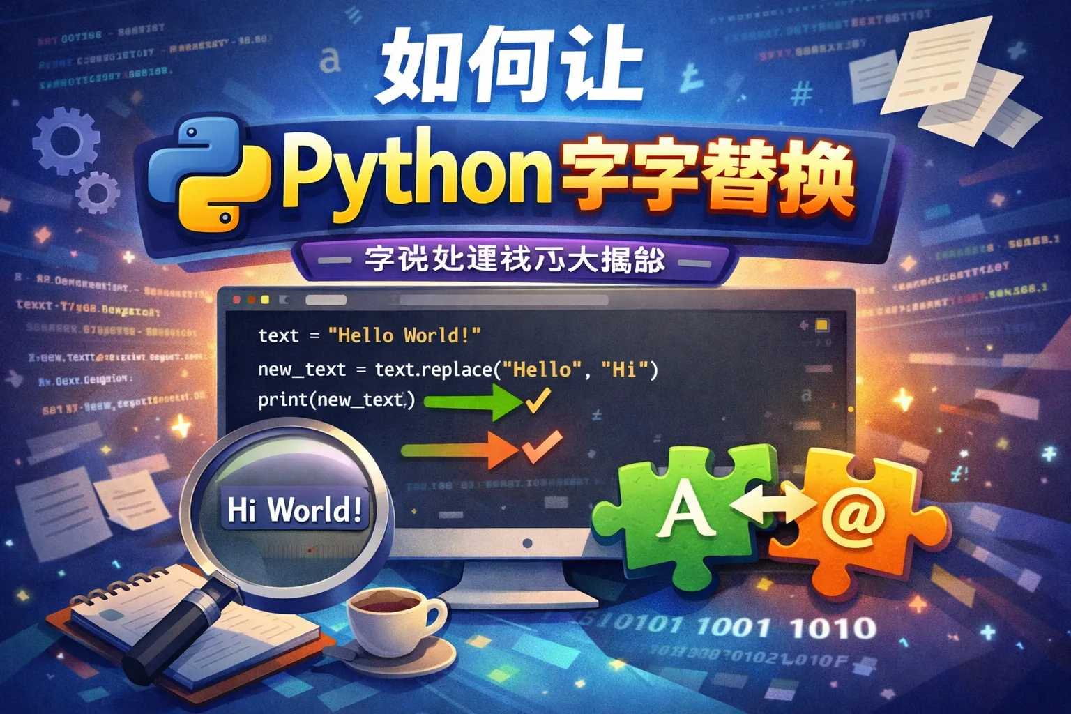 Python的字符串类型提供了replace()方法,可以用来替换字符串中指定的字符或子串。用法是str.replace(old, new),其中old是需要被替换的字符或子串,new是替换成的新内容。这个方法返回替换后的新字符串,原字符串保持不变。