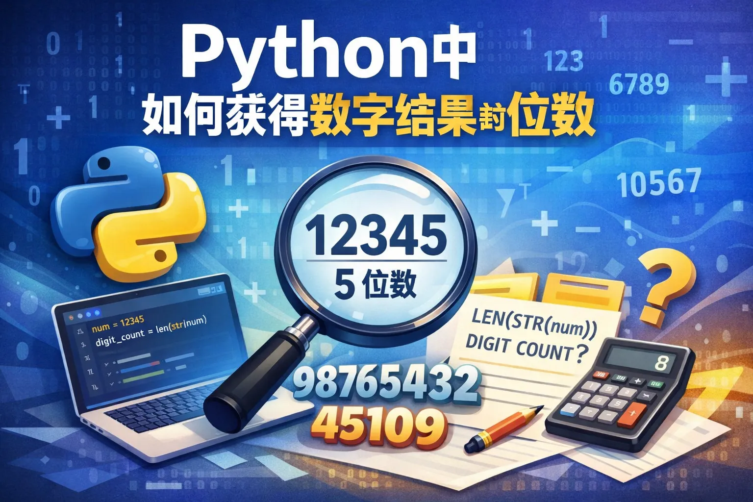 可以将整数转换成字符串,然后使用len()函数获取字符串的长度,即为数字的位数。示例:num = 12345; digits = len(str(abs(num)))。注意使用abs()处理负数。