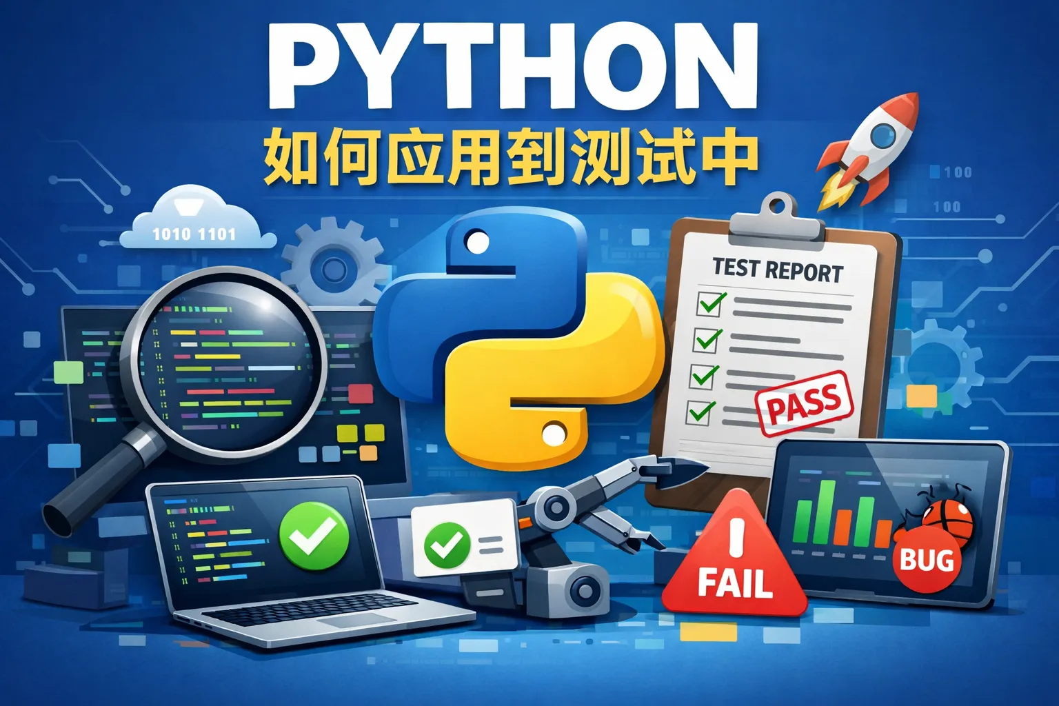 Python具有语法简洁、易读性强的特点,能够快速编写和维护测试脚本。此外,Python拥有丰富的测试框架,如unittest、pytest和Robot Framework,支持多种测试类型,包括单元测试、接口测试和UI自动化测试。其跨平台特性保证测试脚本能够在不同操作系统上无缝执行。