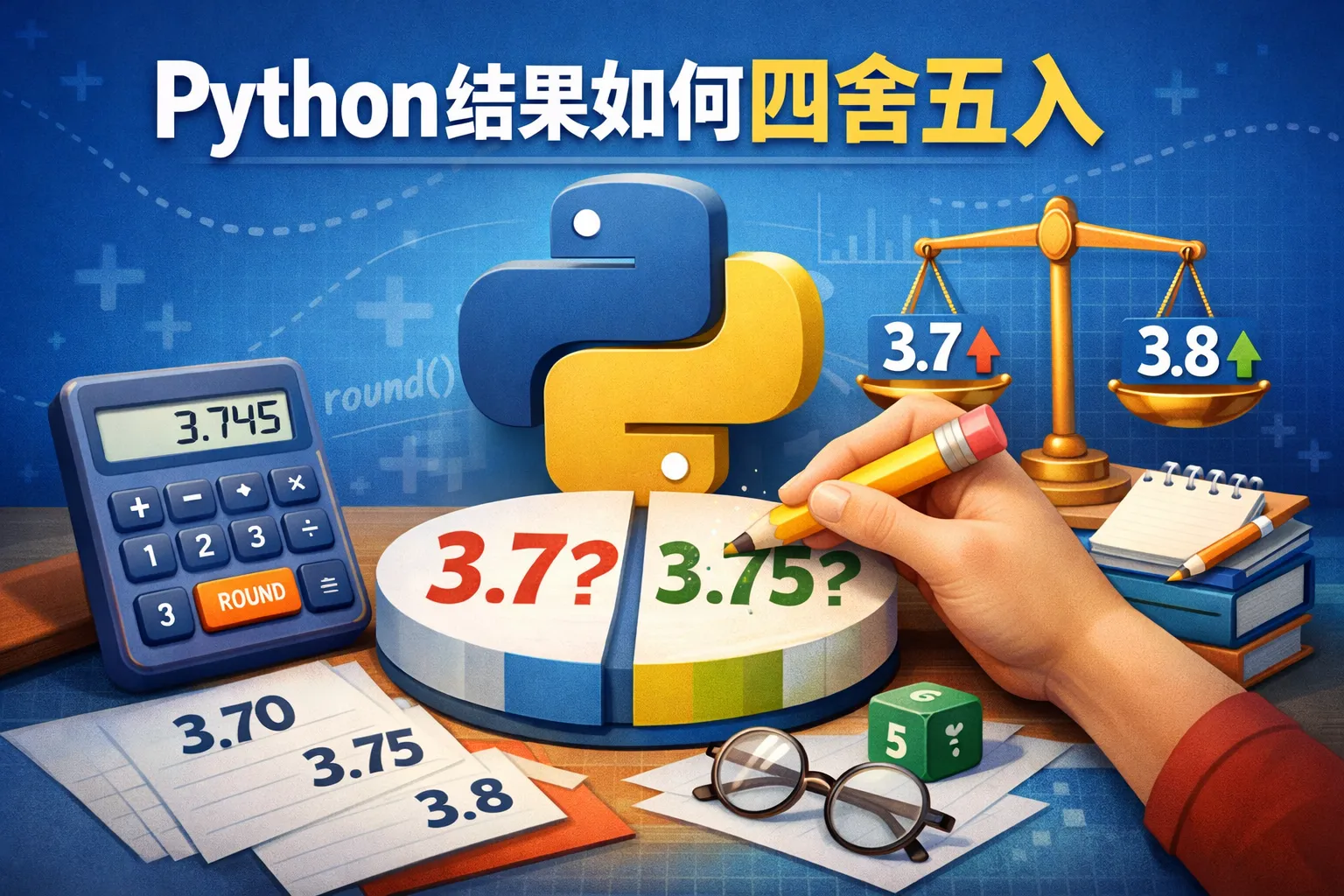 Python内置的round()函数可以帮助实现四舍五入。例如,round(3.14159, 2)会将数字3.14159四舍五入到小数点后两位,结果是3.14。