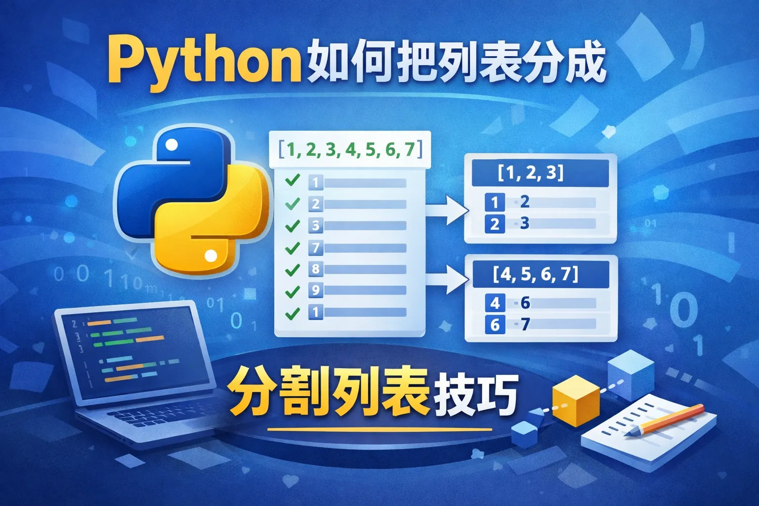 可以通过列表切片配合循环,将原列表按指定大小分割成多个子列表。例如,使用列表推导式结合范围函数,每次切片取出固定数量的元素,分割成新的子列表。还有一种方式是使用生成器函数,利用yield逐步返回分块的子列表,方便在大数据处理时节省内存。