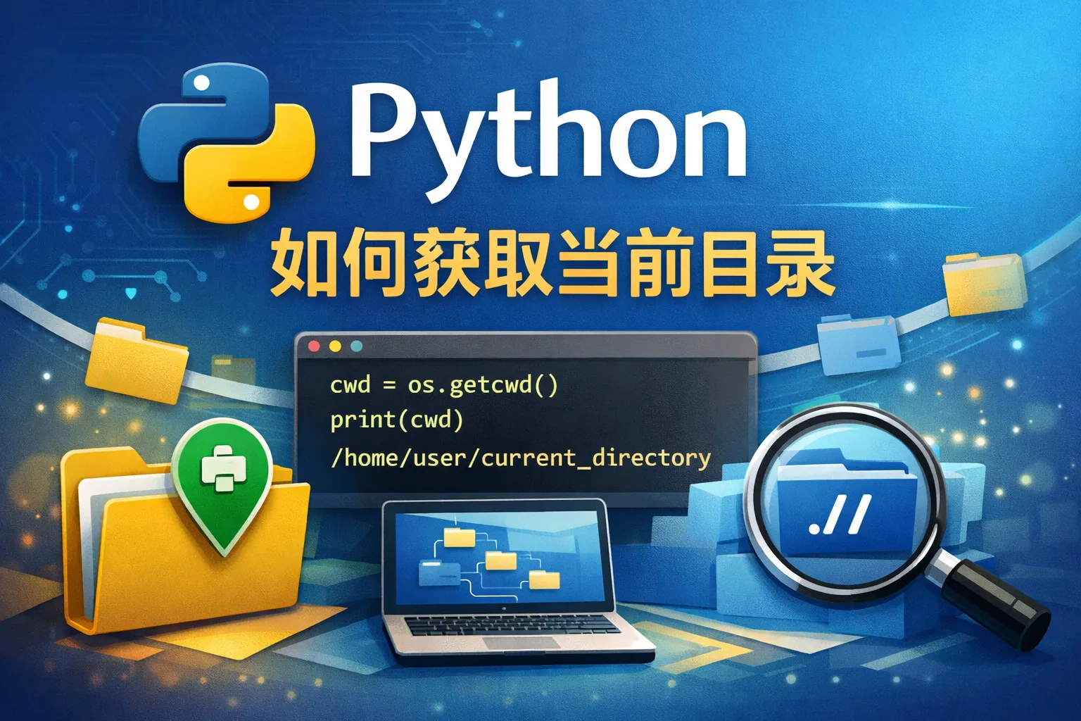 pathlib模块提供了面向对象的路径操作方法。当前目录可以用:from pathlib import Path; current_dir = Path.cwd(); print(current_dir)。