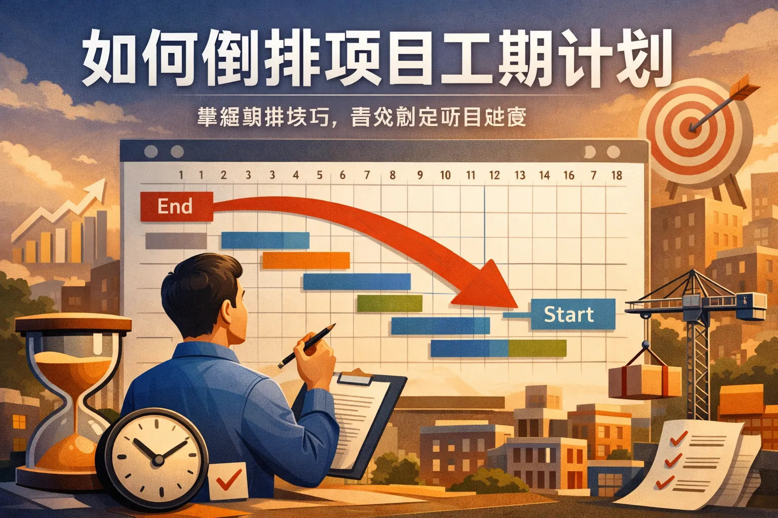 倒排工期计划通常适合时间紧迫、任务复杂、资源有限的项目,尤其是在需要确保关键节点按时完成的情况下发挥重要作用。它能帮助项目团队明确时间优先级,优化工序安排,提高整体效率。