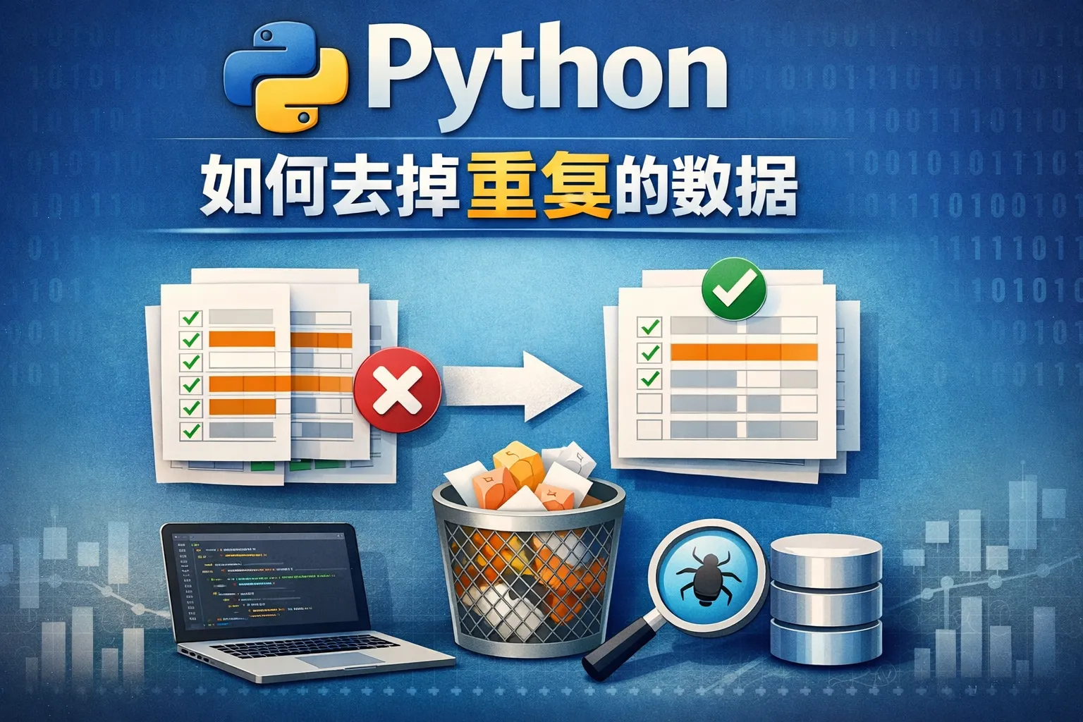 pandas提供了drop_duplicates()方法,可以用来删除DataFrame中的重复行。可以通过参数subset指定检查哪些列的重复,通过keep参数控制是否保留第一条、最后一条或者全部重复行。调用DataFrame.drop_duplicates(inplace=True)即可修改原数据,方便快捷。