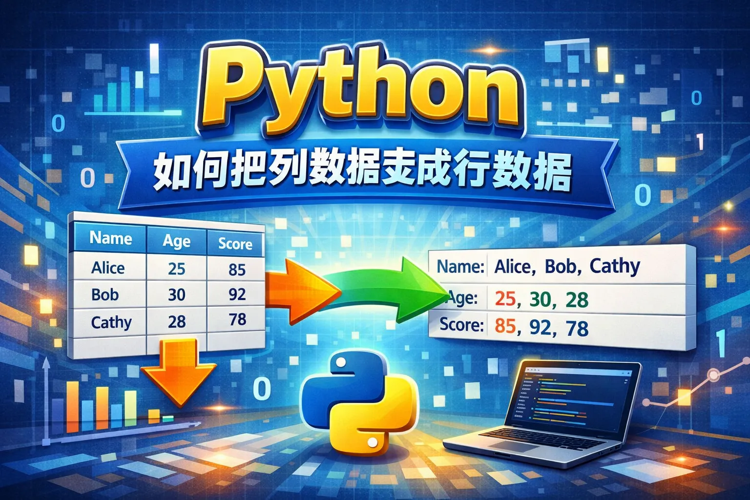 通过列表推导式或NumPy的转置操作完成列转行