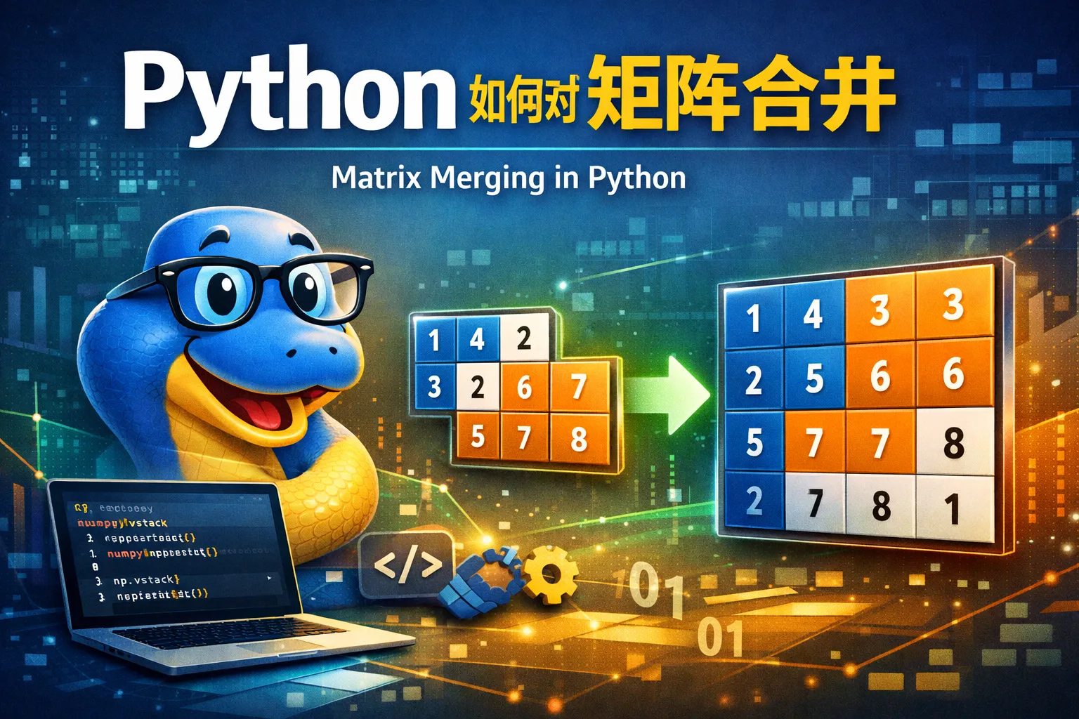 合并矩阵时必须保证维度的匹配。例如按行合并时,两个矩阵的列数必须相同;按列合并时,两个矩阵的行数必须相同,否则会引发错误。使用numpy函数时,最好先检查矩阵尺寸。