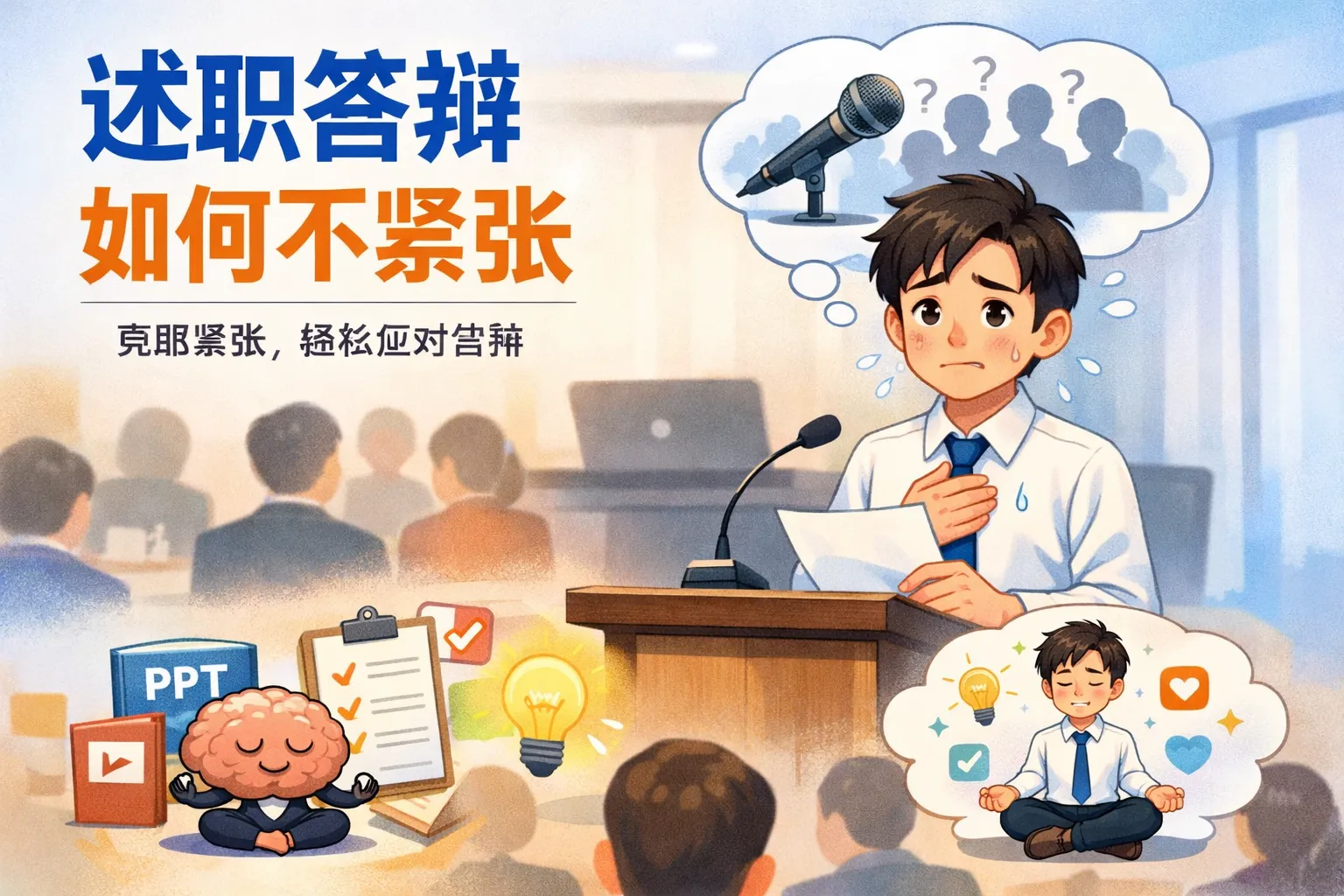 这篇文章围绕述职答辩缓解紧张这一核心主题,从紧张根源拆解、全流程筹备体系搭建、现场应急处理以及长期心态训练四个维度展开,结合权威行业报告数据和紧张类型应对对比表格,给出了可落地的实操方案,帮助职场人区分理性与非理性紧张,通过模块化脚本、多场景模拟等动作降低不确定焦虑,同时提供临场应急技巧和长期抗压训练方法,助力答辩者稳定发挥真实能力,减少紧张情绪对答辩表现的负面影响。