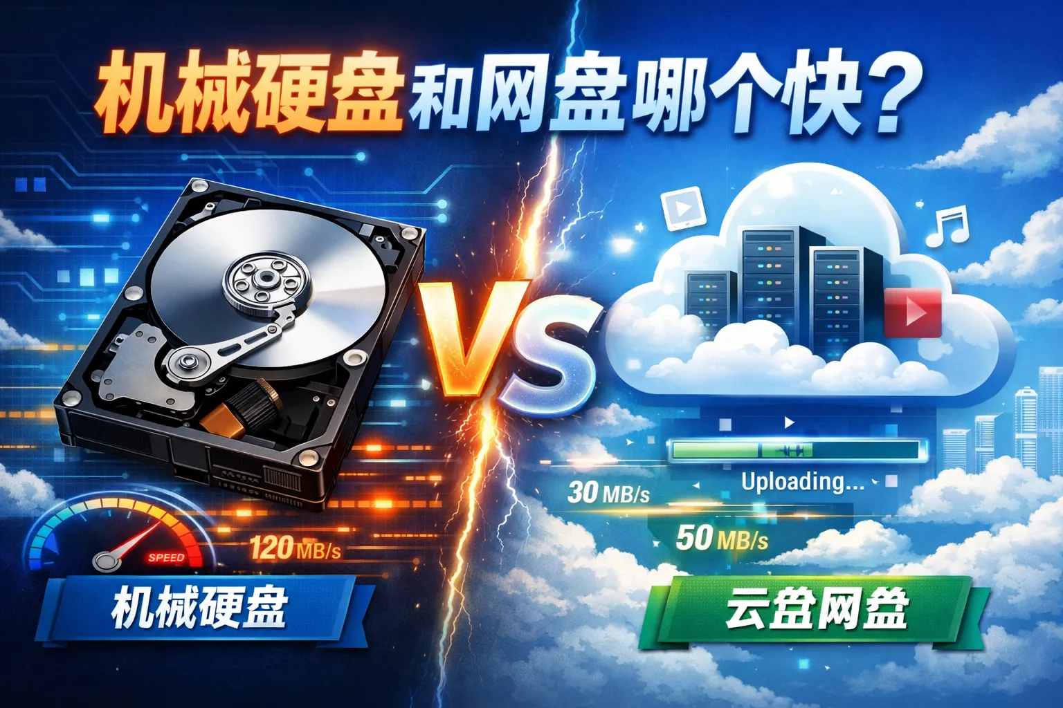 本地同机或局域网搬运大文件时,机械硬盘的顺序读写带宽通常更快且更稳定;但在跨地域分发、多人协作与移动端访问中,优质网盘依托带宽、分片并发、全球加速节点和本地缓存,能更快“到达”目标用户。有效速度由存储吞吐与网络带宽/延迟共同决定:当上行带宽较低时上传耗时更长;在千兆及以上链路下,网盘下载可逼近链路上限。综合而言,本地顺序传输选机械硬盘更快,跨网协作与分享选网盘更高效。