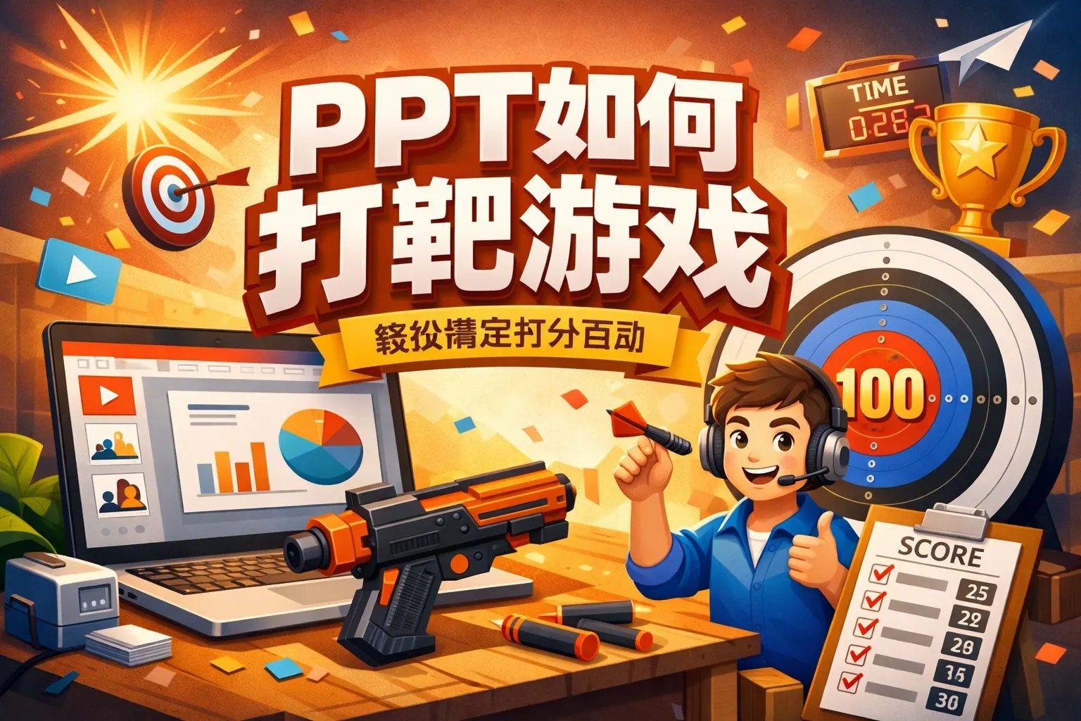 PPT打靶游戏的制作核心在于利用动画触发器、动作路径和超链接跳转构建互动逻辑,通过设置命中反馈、计分页面和多轮切换机制,可以在不编程的情况下实现类似射击小游戏的效果。文章系统讲解了制作步骤、计分方式、进阶玩法、视觉优化与常见问题解决方法,并结合权威理论说明互动设计的学习价值,适用于教学培训与企业活动场景。
