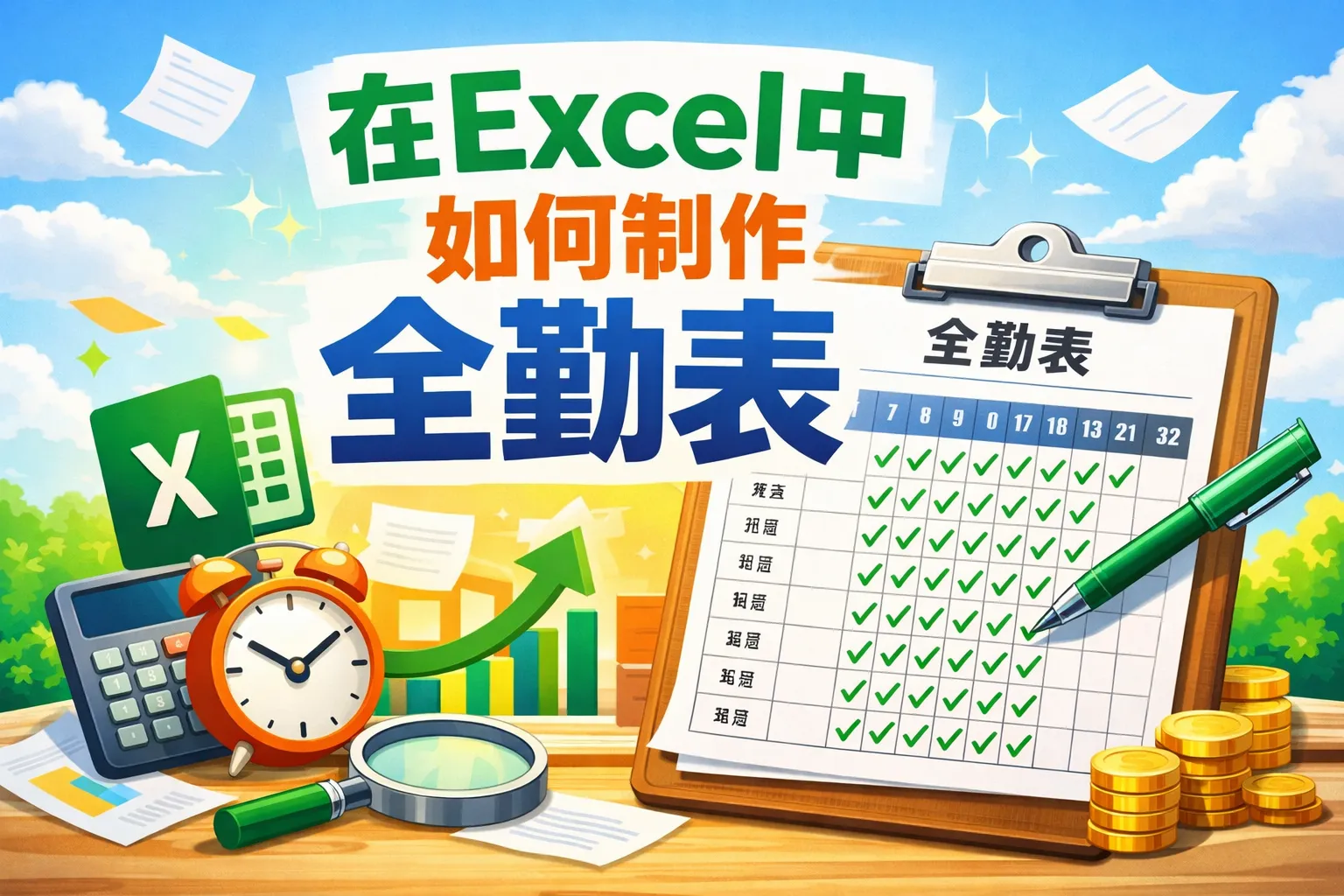 在excel中如何制作全勤表