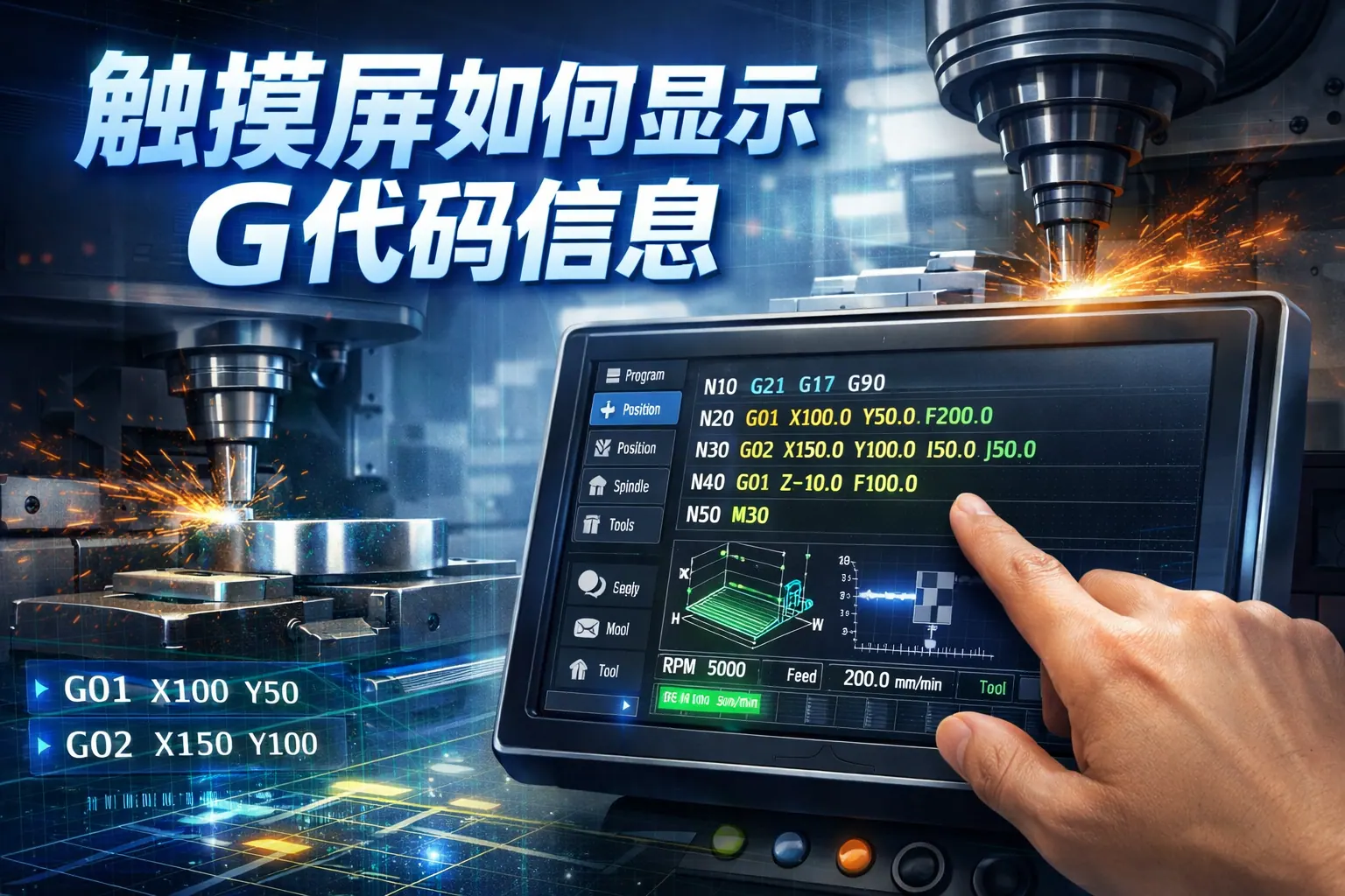 触摸屏显示G代码信息的核心在于控制系统对G代码进行解析,并通过人机界面将代码文本、刀具路径和运行状态等数据可视化呈现。常见实现方式包括数控系统内置显示、工业平板集成软件、嵌入式HMI开发及远程监控方案,关键技术涉及代码解析、通信协议和界面设计。随着智能制造发展,触摸屏显示正从基础文本展示升级为智能可视化与远程集成平台。