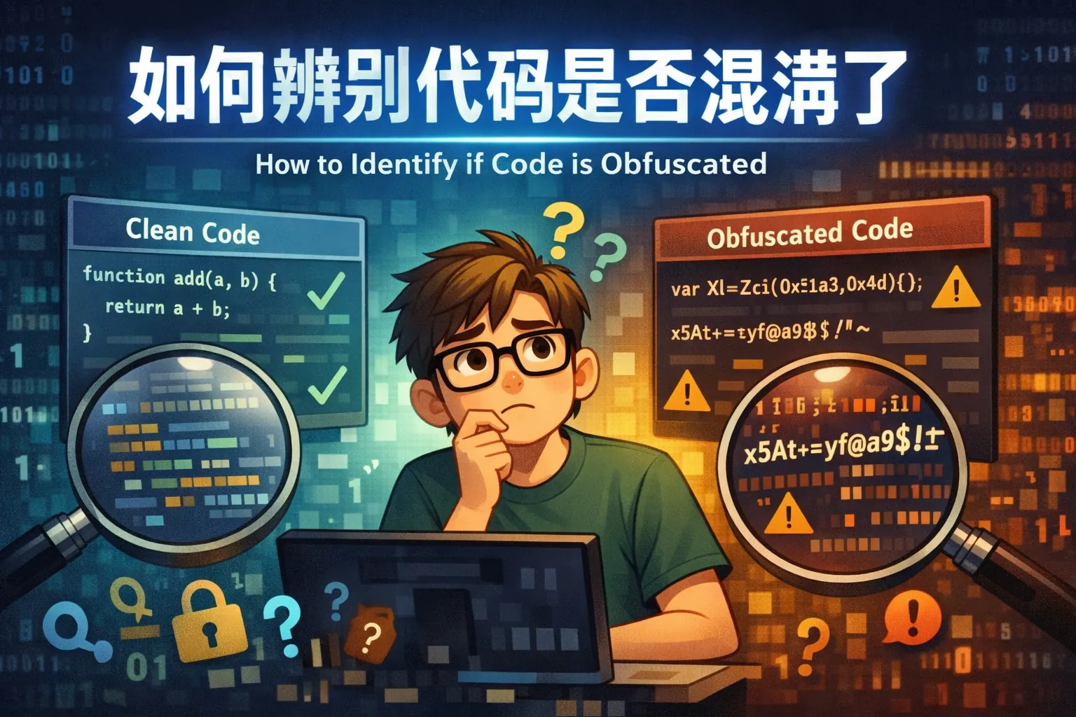 判断代码是否混淆主要从变量命名是否无语义、控制流是否异常复杂、字符串是否加密还原三个方面入手,同时结合文件结构、构建流程和压缩与混淆差异进行综合分析。当代码呈现大量单字符命名、状态机式控制结构和运行时解密逻辑时,通常可以确认存在混淆处理。掌握系统化判断方法,有助于在安全审计、逆向分析与合规检查中快速识别代码状态。