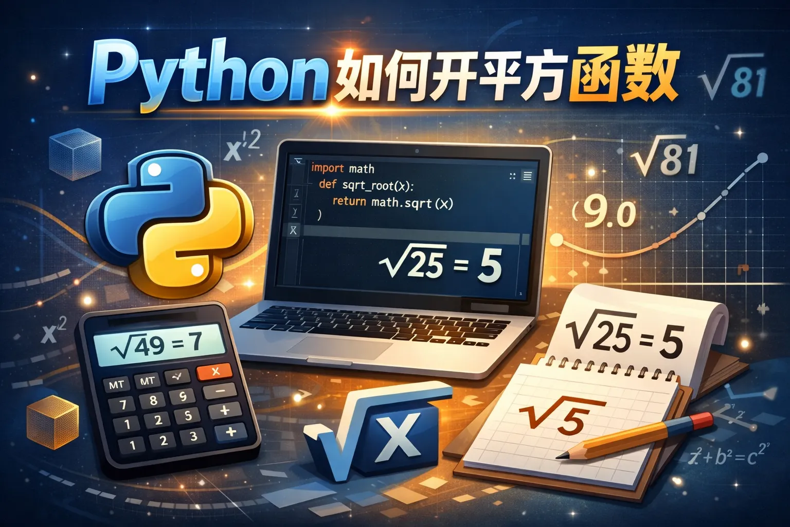 python如何开平方函数