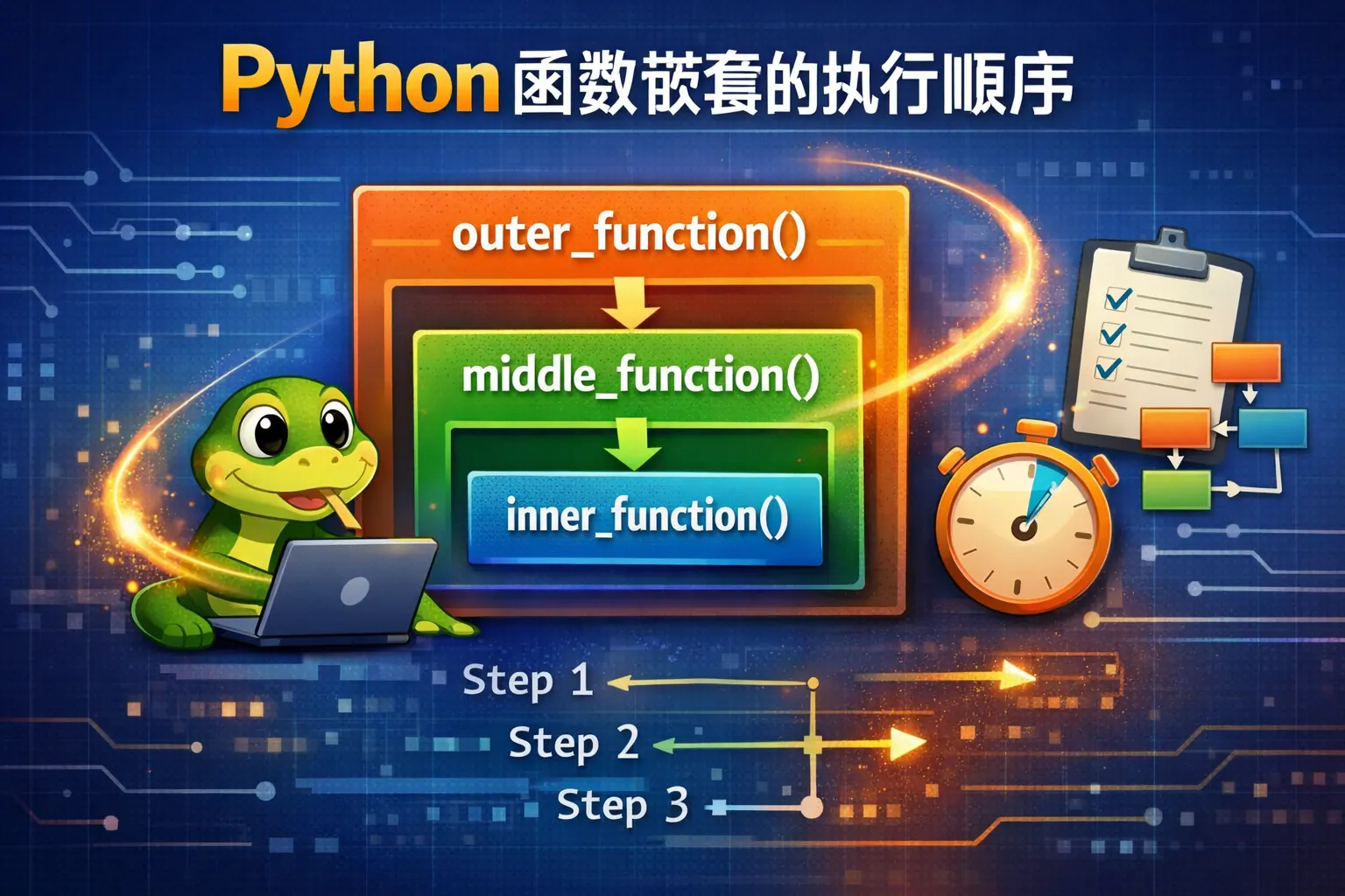 本文系统解析了 Python 嵌套函数的执行顺序,指出其核心规律在于“外层函数先被调用,内部函数才会被定义并执行”。文章从解释器执行模型、作用域规则、闭包机制以及 return 行为等多个角度,说明了定义顺序与执行顺序的本质区别,并分析了多层嵌套函数在真实调用路径中的运行逻辑。通过结合实际开发场景与常见误区,强调理解嵌套函数执行时机对于调试、性能优化和代码设计的重要性,为开发者构建清晰、可预测的程序行为提供了系统参考。