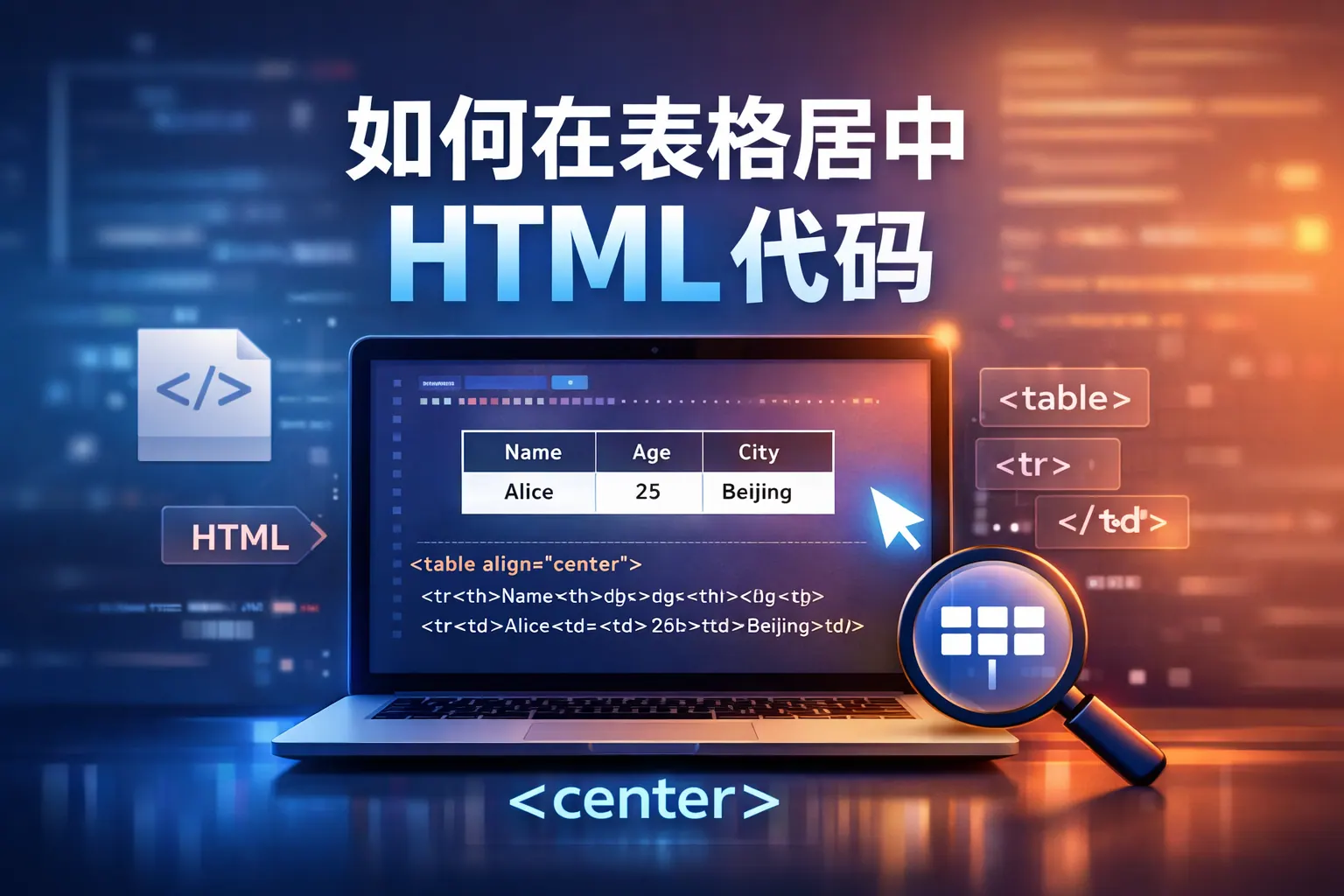 如何在表格居中html代码