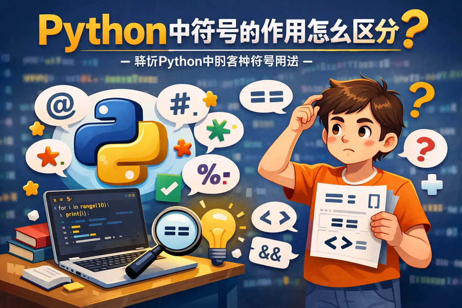 本文系统讲解了 Python 中常见基本符号的含义与使用逻辑,从赋值、算术运算、比较判断,到函数、流程控制和面向对象相关符号,全面梳理了它们在实际编程中的语义差异和设计思想。文章强调 Python 符号并非简单语法记忆,而是围绕可读性和表达力构建的整体体系,理解这些符号有助于提升代码正确性、可维护性与工程质量,并对 Python 未来语法演进趋势进行了简要展望。