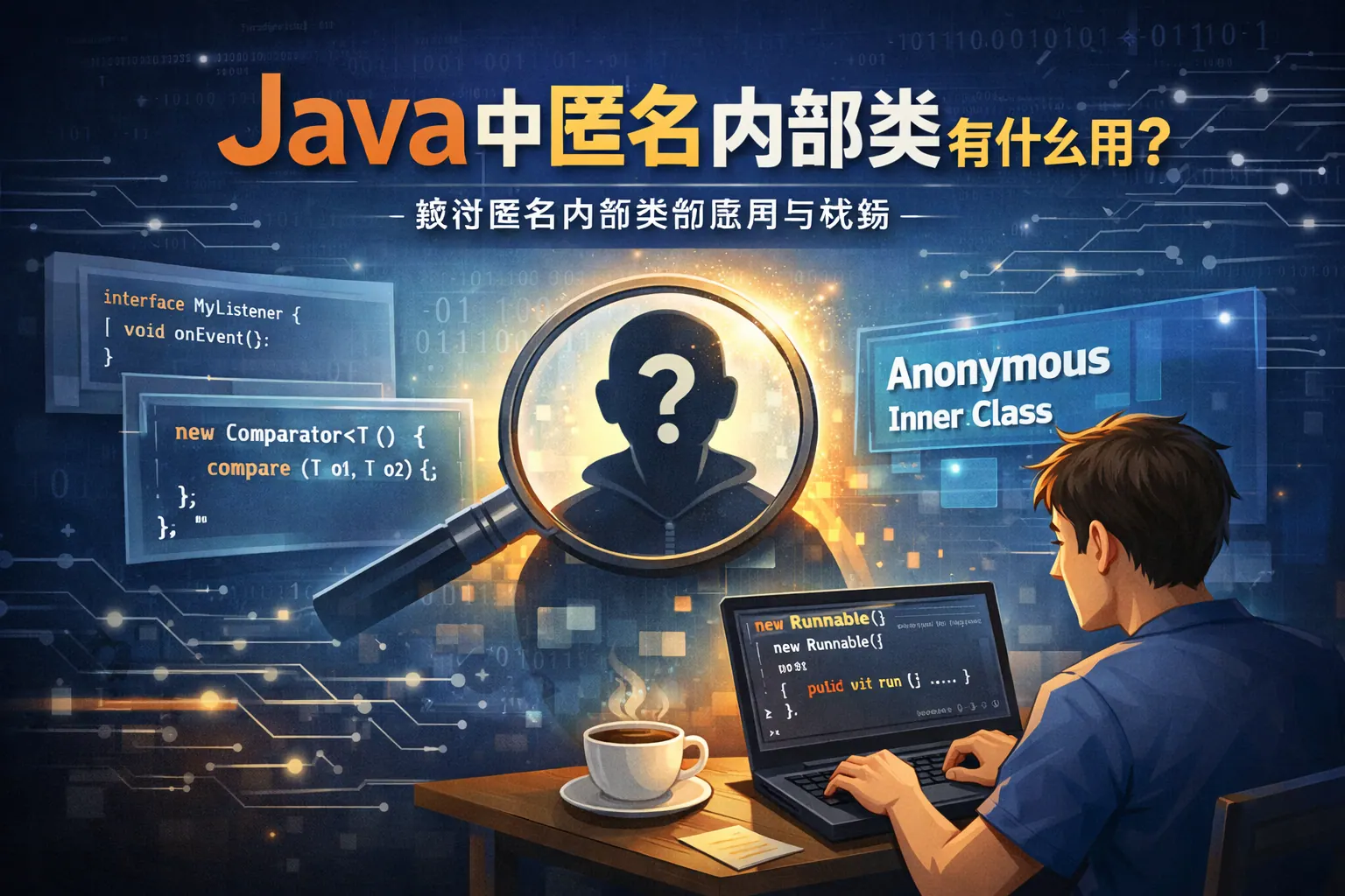 匿名内部类在 Java 中的核心价值在于用最小结构成本完成一次性行为实现,使代码更贴近使用场景并保持类型安全。它主要用于回调、监听和临时策略等低复用场景,帮助控制类数量和抽象层级。尽管 Lambda 表达式降低了部分使用频率,但匿名内部类在抽象类实现、多方法接口及复杂上下文中仍不可替代。合理使用匿名内部类,有助于提升代码可读性和长期可维护性。
