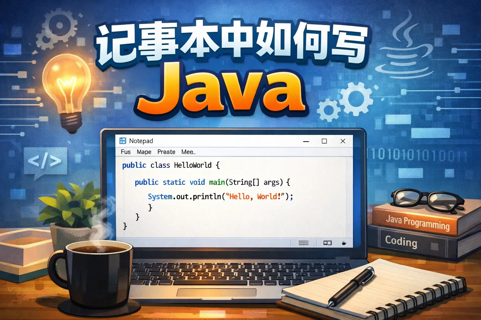 记事本中如何写java