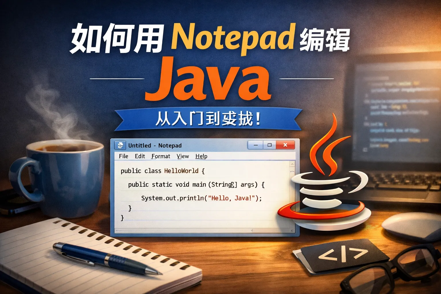 如何用notepad 编辑java
