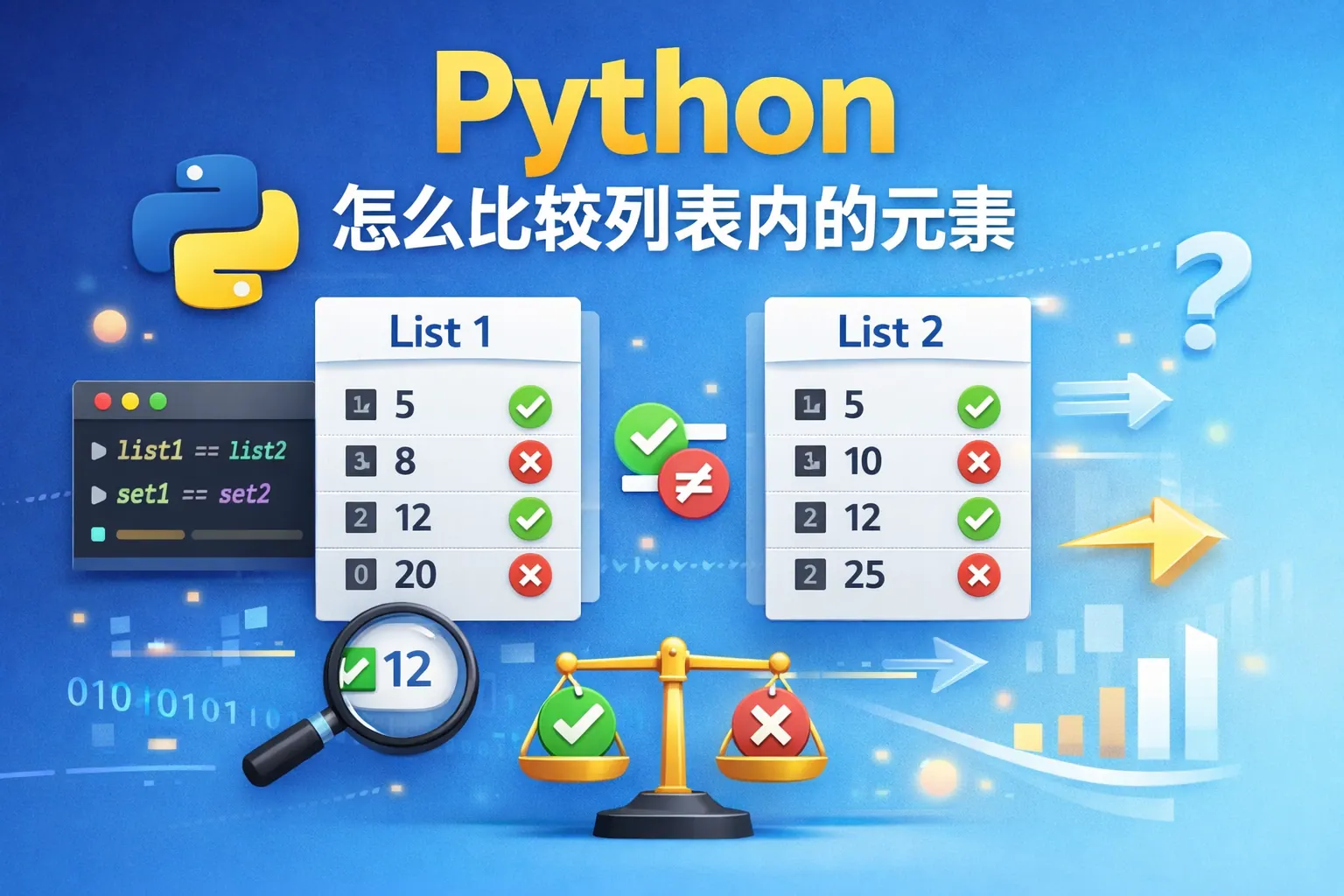 本文系统讲解了 Python 中比较列表内元素的多种方式,从整体等值比较、顺序与大小比较,到逐元素判断、集合差异分析以及复杂对象的自定义比较。文章强调不同方法在顺序、重复次数与性能上的语义差异,并结合实际开发场景指出常见误区。通过合理选择比较策略,可以显著提升代码的可靠性、可读性与运行效率。