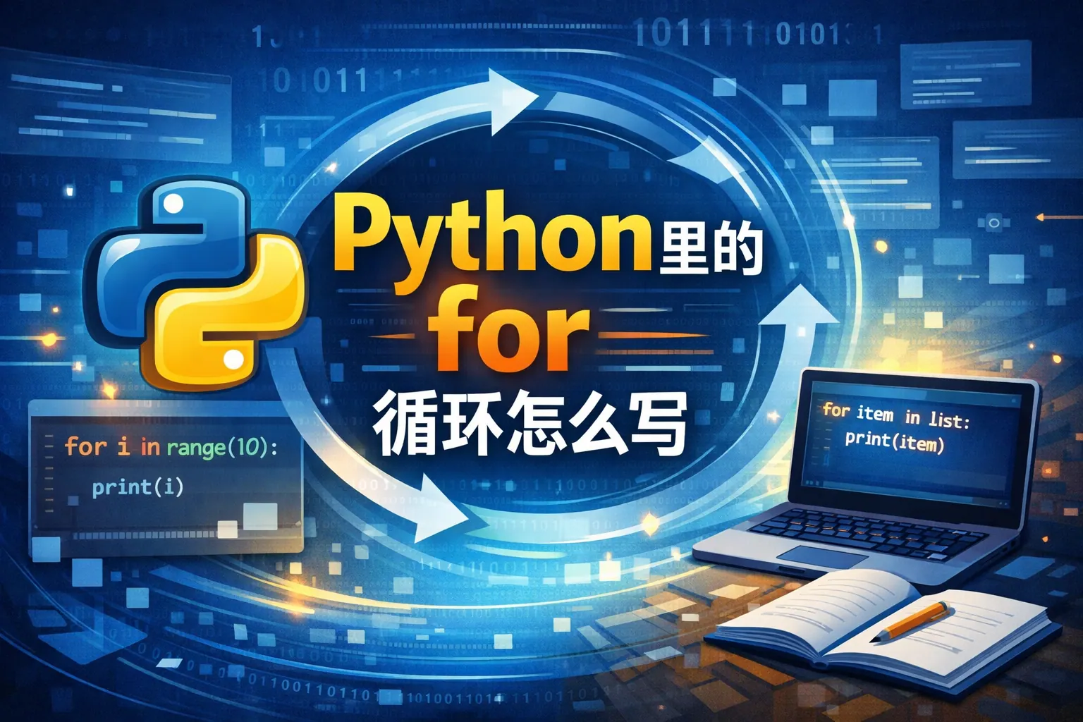 本文系统讲解了 Python 中 for 循环的写法与使用方式,从基本语法、遍历不同数据类型,到 range、break、continue、for…else 等进阶用法,全面覆盖了实际开发中的常见场景。文章还结合 enumerate、zip 与列表推导式,说明如何提升 for 循环的表达力与可读性,并总结了嵌套循环与性能优化的注意事项,帮助读者建立对 Python for 循环的完整认知。
