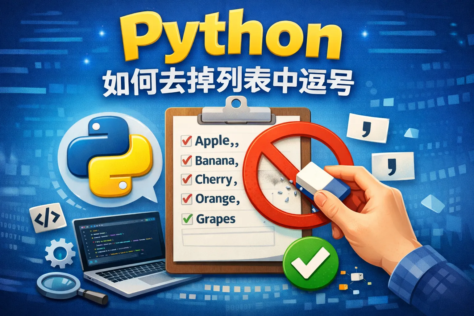 本文围绕“Python去掉列表中逗号”的两类核心需求给出清晰解法:若是展示层面,使用join或print解包配合sep控制分隔;若是数据清洗,则用replace或正则在元素层面移除逗号,并注意本地化的数字与货币格式。在JSON、CSV等标准格式中避免手工替换,改用标准库安全序列化。文中结合性能、可维护性与风格建议,并通过工具函数与团队规范保障一致性与复用,帮助在多种业务场景稳定落地。