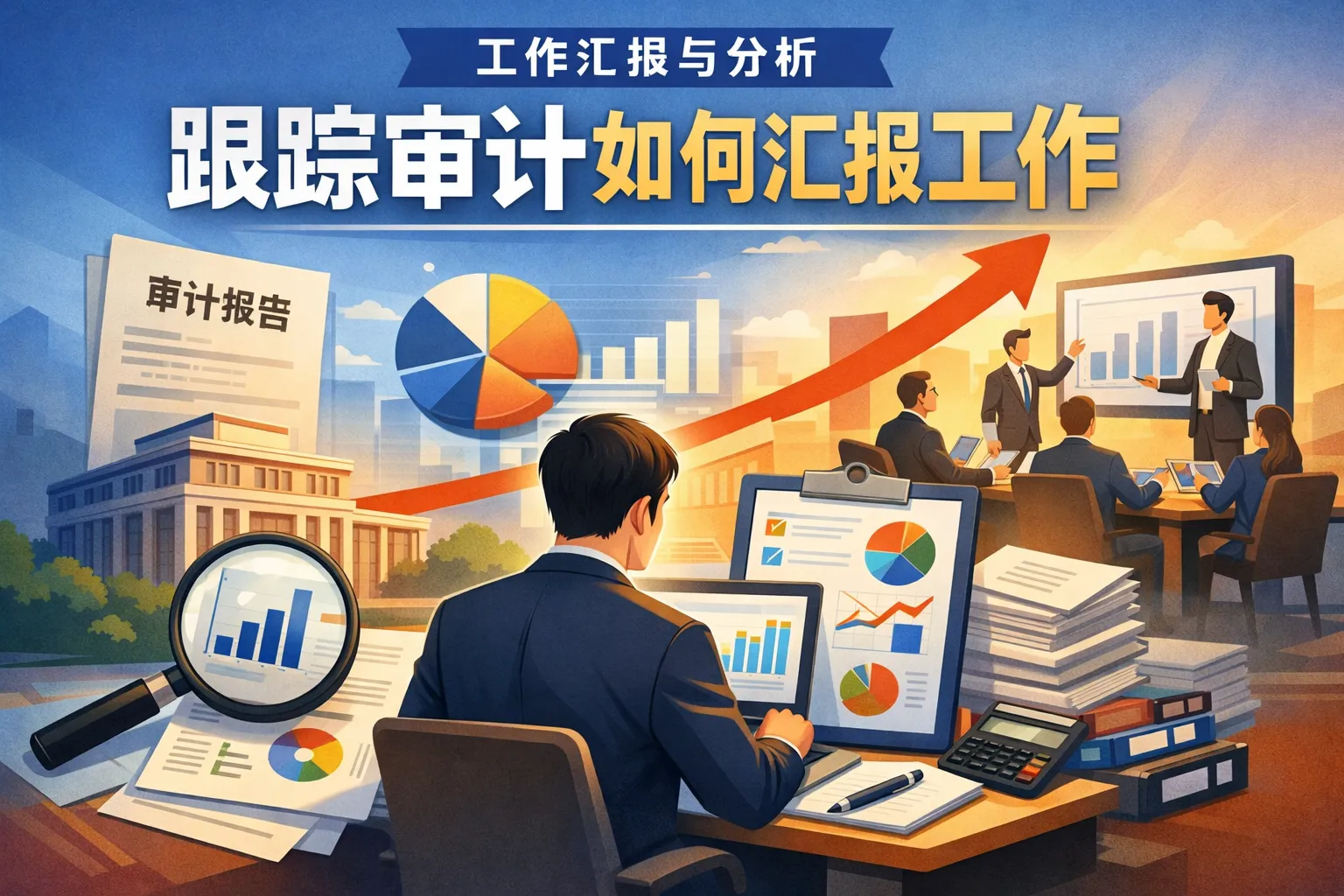 审计工作汇报应以风险为主线,采用标准化结构与充分证据支撑,通过执行摘要、范围与方法、主要发现、风险评级、整改建议与计划、跟踪机制等模块清晰呈现内容;用量化数据与可视化增强可读性,以SMART建议提升可执行性,并通过RACI与协作工具保障整改闭环;结合权威框架与数据分析方法提高专业信度,将审计报告从“发现问题”转化为“推动治理与合规”的决策依据与执行方案。