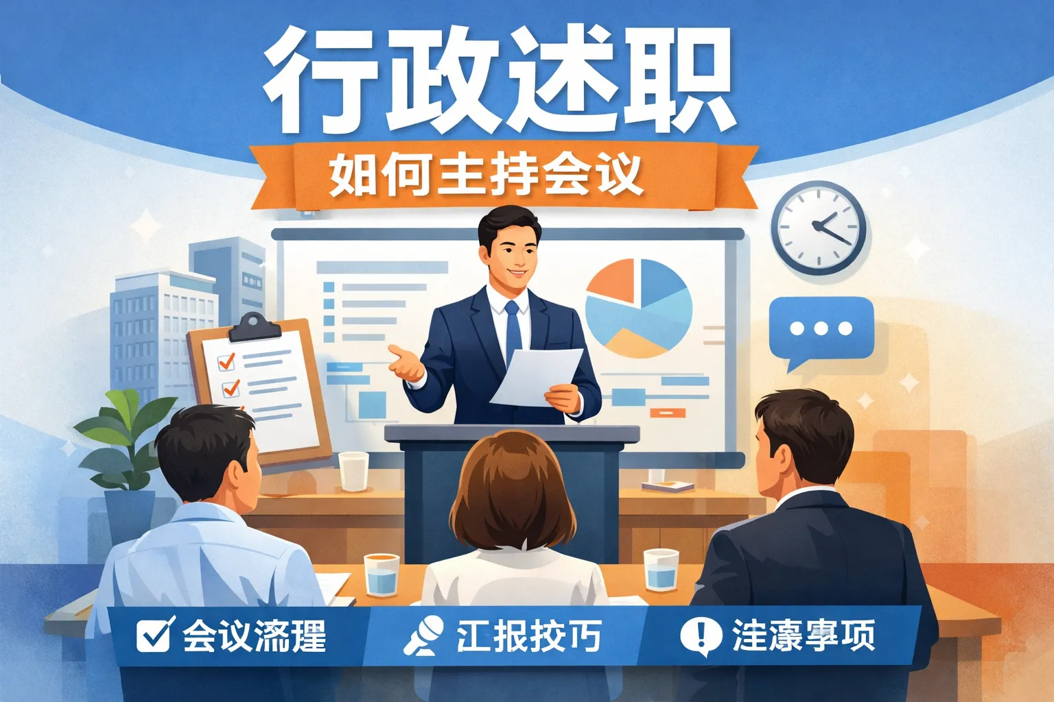 这篇文章围绕行政述职会议的主持工作,从前期筹备、开场节奏、述职管理、互评引导、总结落地、应急方案和事后优化七个维度,详细介绍了标准化的主持方法,结合权威报告数据佐证流程优化带来的效率提升效果,还提供了不同规模会议的筹备对比方案,帮助主持人解决会议中常见的超时跑题、空泛互评等问题,实现行政述职会议从形式化到实战化的转型。