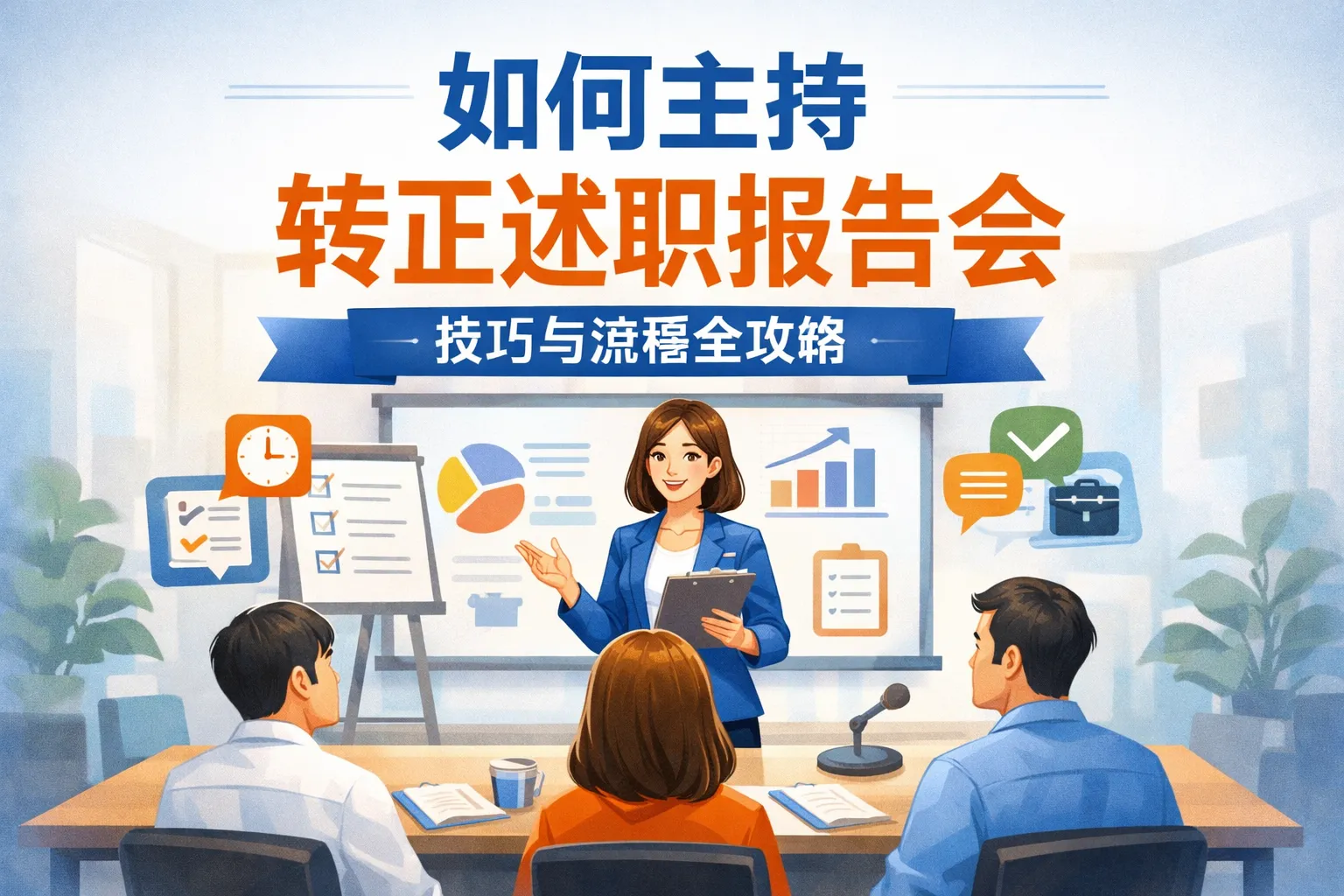 本文围绕转正述职报告会的主持流程展开,从会前筹备、开场把控、答辩管理、表决收尾到特殊场景应急处理全维度拆解实操技巧,结合权威报告数据说明标准化主持的价值,对比新手与资深主持的筹备差异,帮助主持者打造高效合规的述职会议。