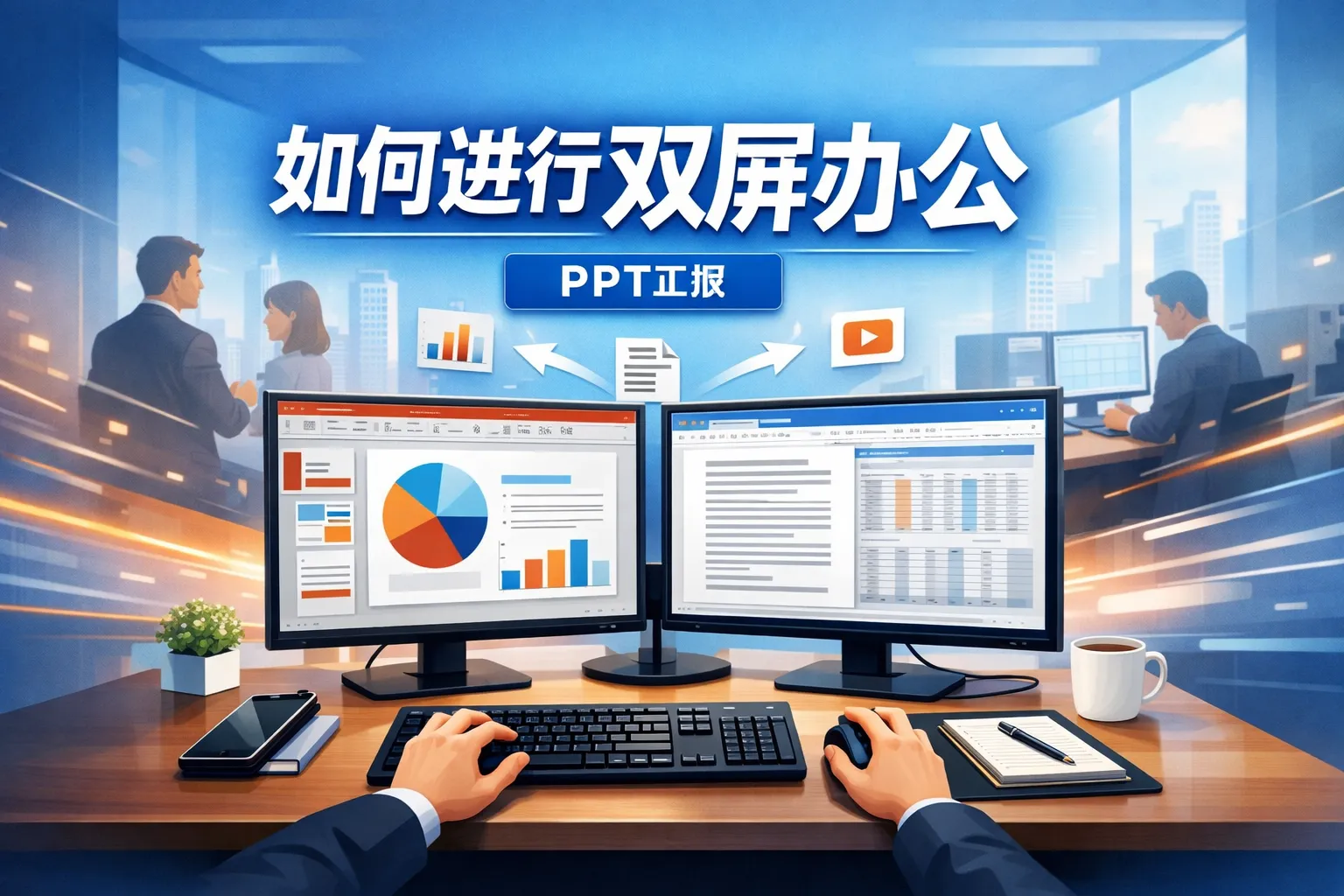 实现PPT双屏汇报的核心是将系统切换为扩展屏并启用PowerPoint的演示者视图:Windows按Win+P选“扩展”,在幻灯片放映中勾选“使用演示者视图”并指定外接屏;macOS在系统设置—显示器中选择“使用作独立显示器”,在PowerPoint/Keynote中把放映屏设为外接屏。稳定性方面,有线连接更稳更低延迟,无线投屏更灵活但依赖网络;视频/音频需提前试播并检查输出设备。通过合理设置分辨率与缩放、善用激光笔与黑屏等功能、准备线缆与应急方案,并在协作系统中制定清单与版本规范,即可在会议室、远程会议等多场景下实现稳定、专业的双屏汇报。===