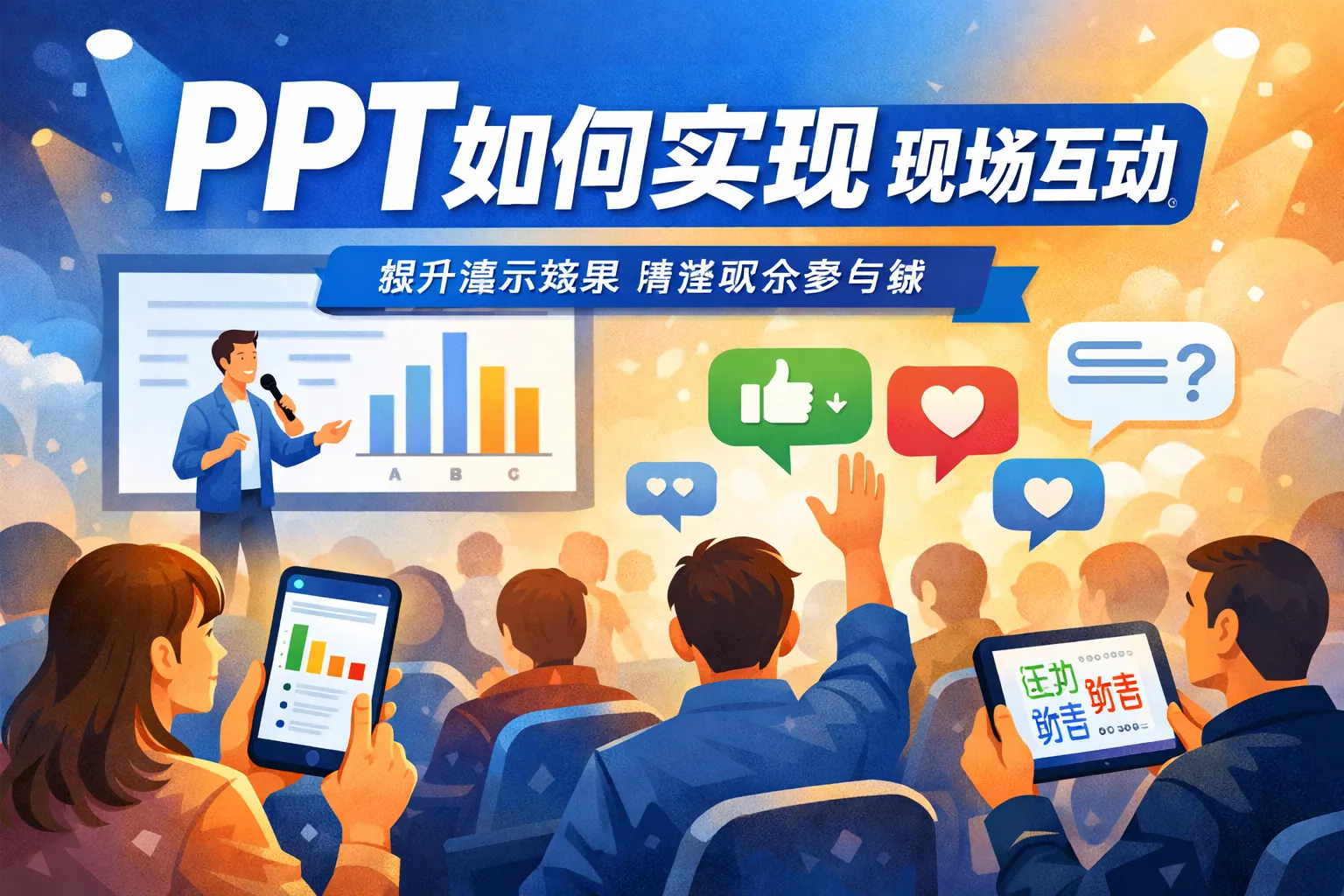 PPT实现现场互动的关键在于将单向展示转化为双向参与,通过实时投票、问答收集、情境任务、弹幕反馈和数据可视化等方式增强参与感与反馈机制。高质量互动需要清晰的问题设计、合理的节奏控制以及技术保障,并根据线上线下不同场景进行调整。未来PPT互动将向沉浸式与数据化方向发展,成为提升表达效果与决策效率的重要工具。