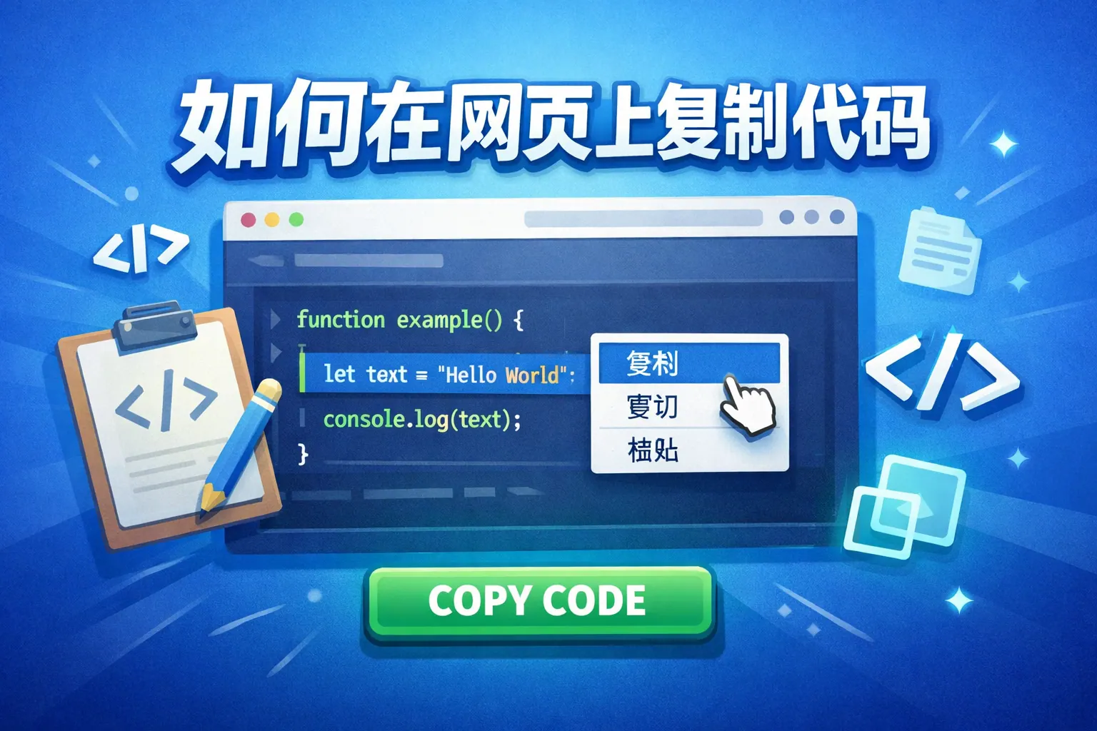 如何在网页上复制代码