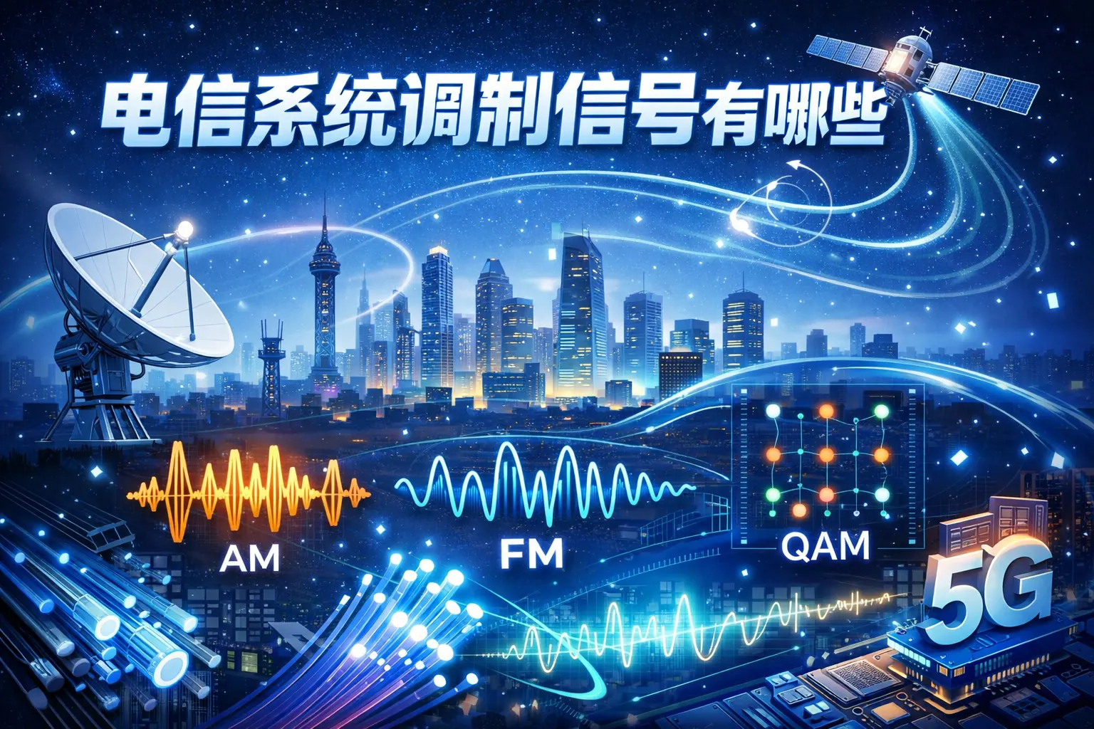 电信系统调制信号主要分为模拟调制和数字调制两大类,其中包括AM、FM、PM以及ASK、FSK、PSK、QAM等形式。随着通信技术发展,数字调制已成为移动通信、光通信和卫星通信的核心技术,高阶调制显著提升频谱效率和数据速率。未来调制技术将向更高效率、更强抗干扰和智能自适应方向演进,在新一代通信系统中发挥关键作用。