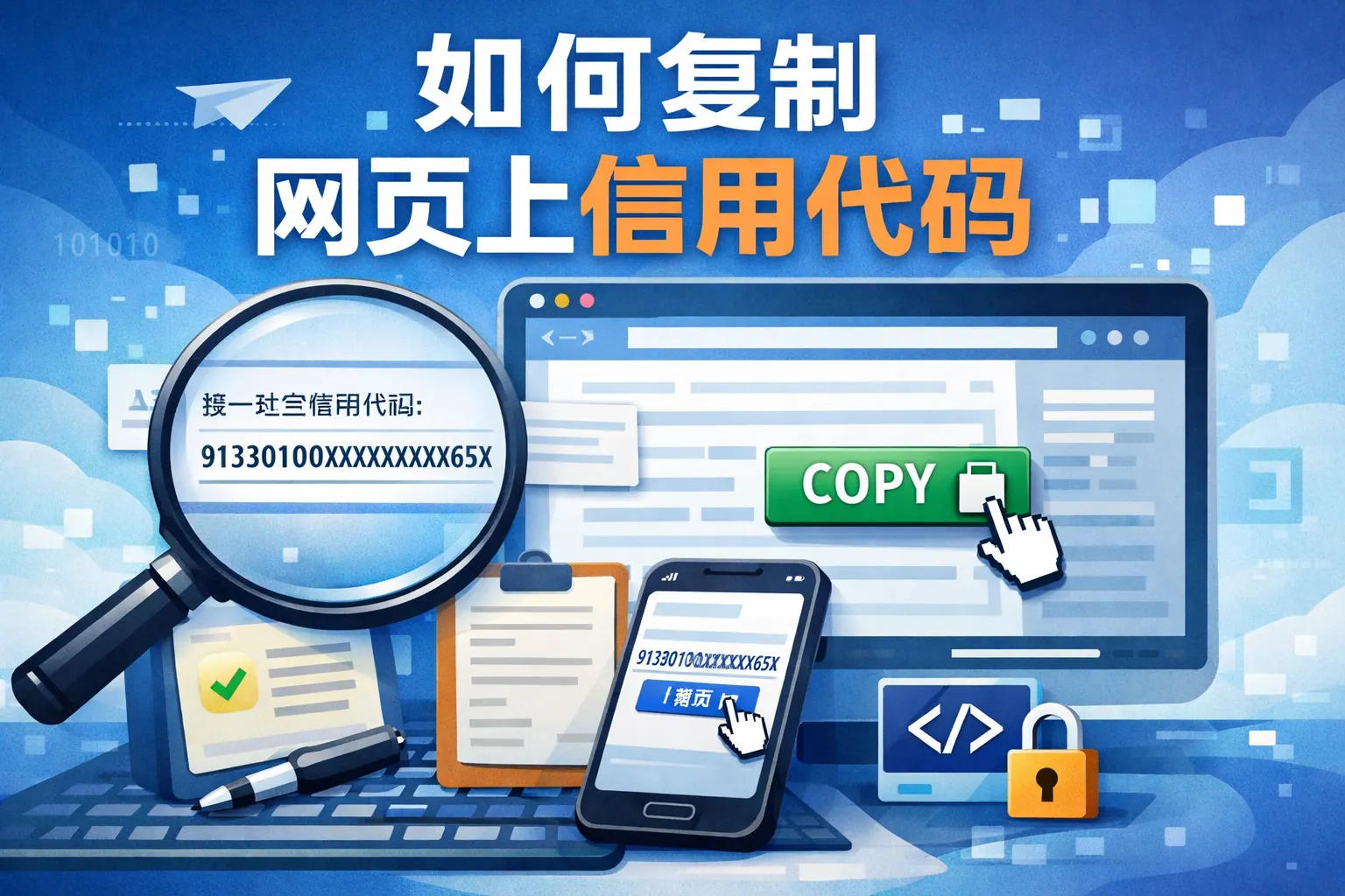如何复制网页上信用代码