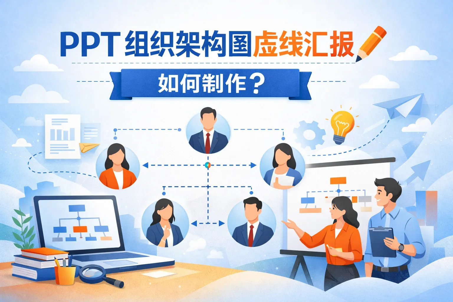 ppt组织架构图虚线汇报如何制作