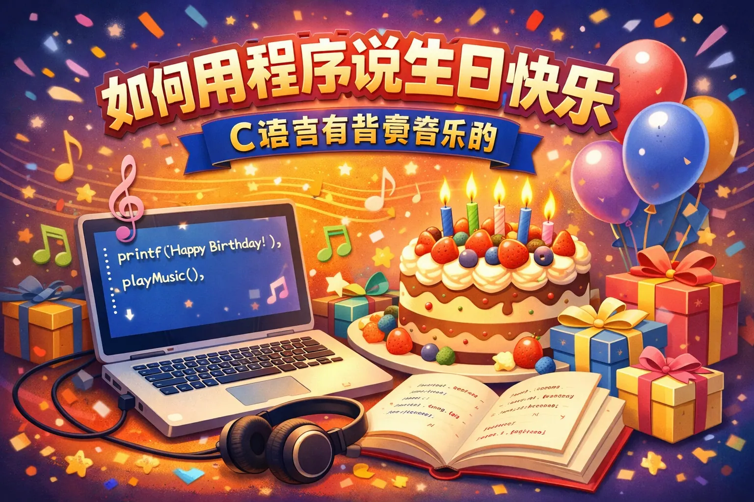 如何用程序说生日快乐c语言有背景音乐的