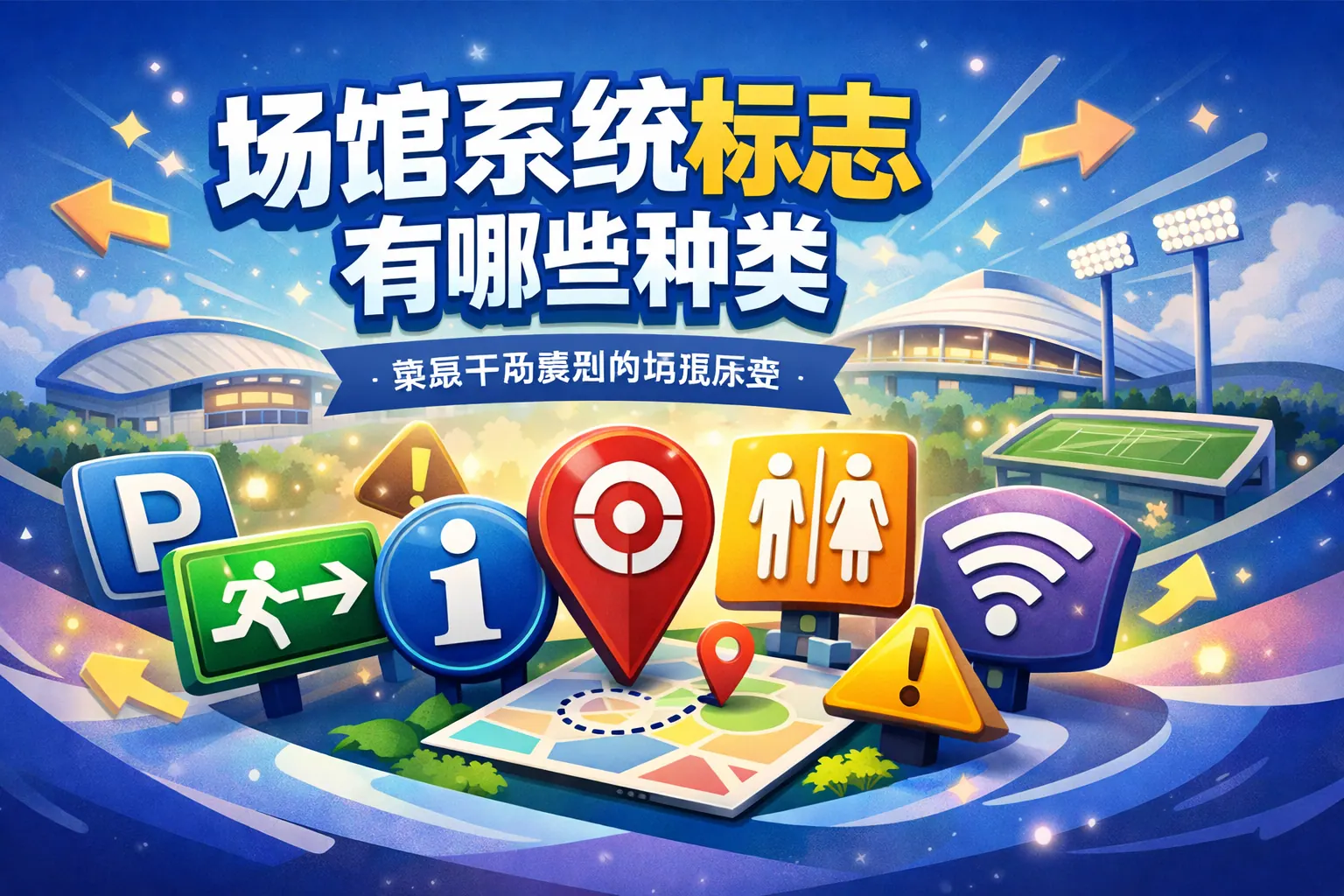 场馆系统标志主要包括导向标志、服务设施标志、安全消防标志、交通停车标志、功能分区标志、无障碍标志和品牌形象标志等类型,共同构成完整的信息传达与空间管理体系。不同类别的场馆标识承担引导人流、保障安全、提升体验与强化品牌识别等功能。随着智慧场馆发展,标志系统正向数字化、智能化和人性化方向升级,成为现代公共空间运营管理的重要基础设施。