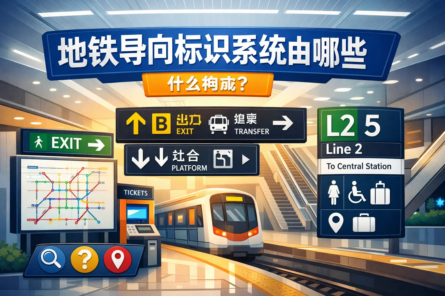 地铁导向标识系统由线路识别系统、站内空间导向系统、功能服务标识系统、安全应急标识系统、视觉识别系统及数字化信息发布系统六大部分构成,形成覆盖进出站与换乘全过程的完整信息体系。其核心在于信息分级、连续引导与视觉统一,通过标准化符号、多语种支持与智能化技术提升乘客通行效率与安全保障能力,未来将向智能化、无障碍优化与数据驱动方向持续演进。