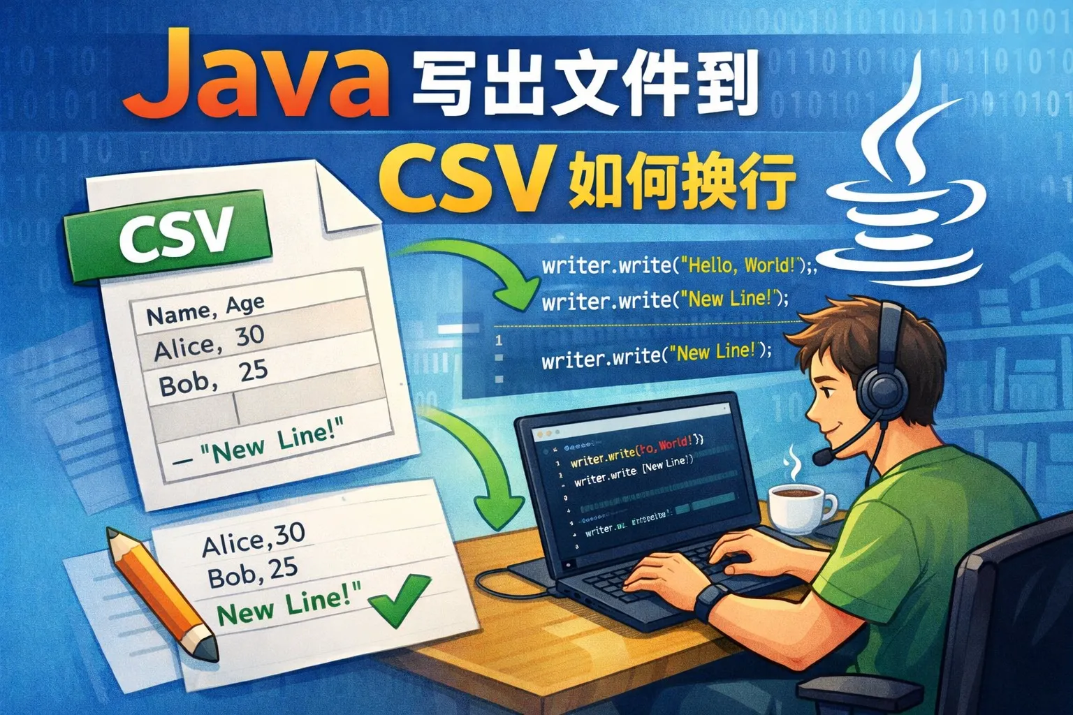java写出文件到csv如何换行