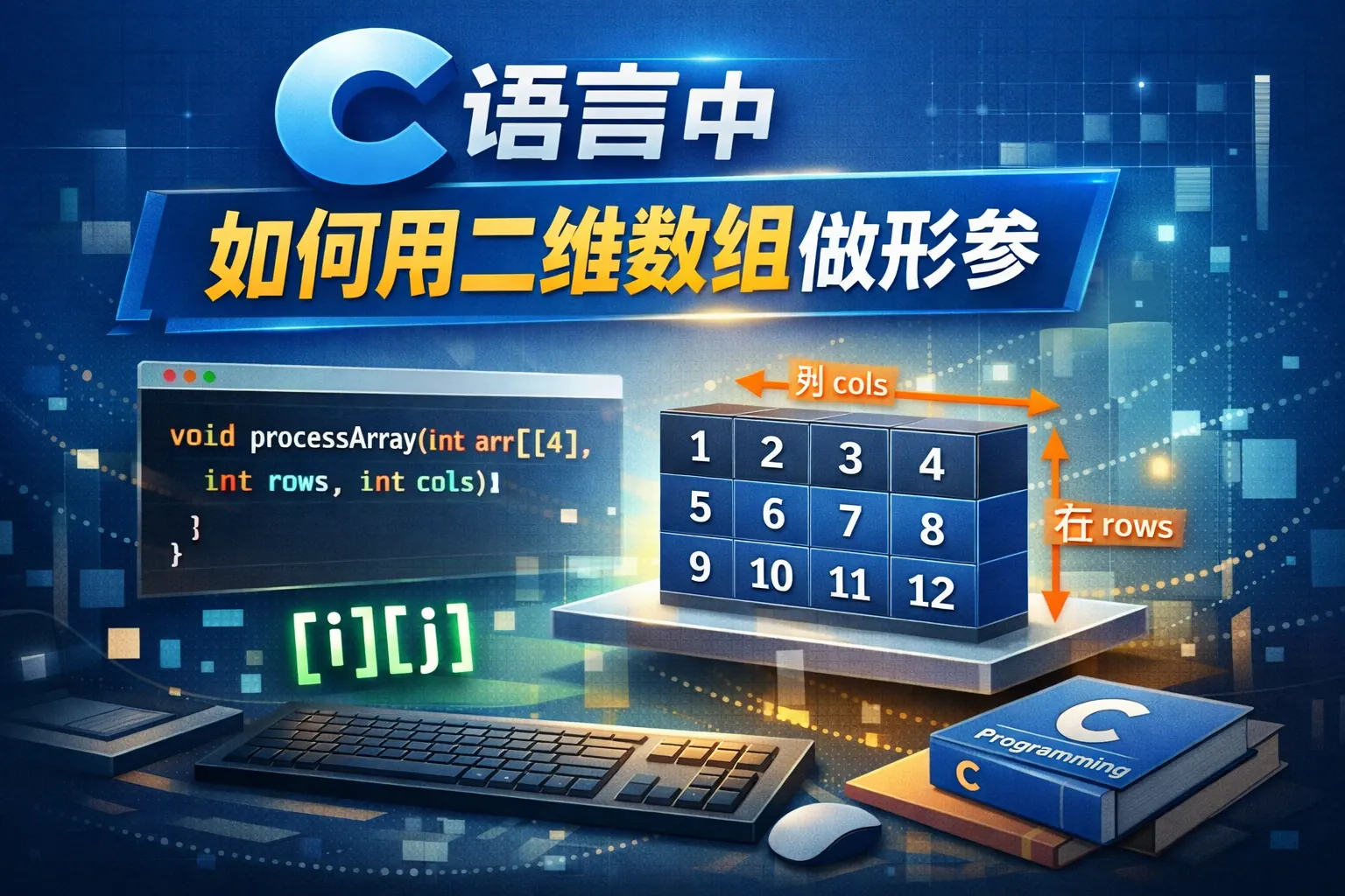 在C语言中,二维数组作为函数形参时必须明确除第一维之外的所有维度大小,因为数组在传参时会退化为指向数组的指针,编译器需要已知列数才能计算内存偏移。常见标准写法包括固定列数形式和指向数组的指针形式,C99之后还可以使用可变长度数组。不能用int**替代普通二维数组形参,否则会导致内存结构不匹配。理解二维数组连续存储的内存模型,是正确使用二维数组做形参的关键。